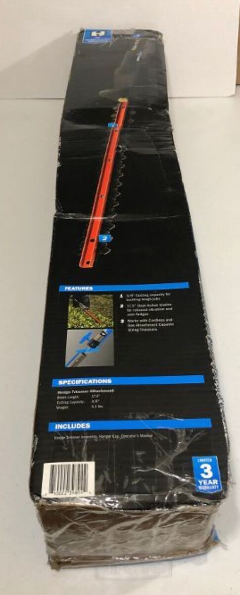 The *NEW* HART Powerfit 17-in Hedge Trimmer Attachment is a high-quality outdoor power equipment accessory designed for various brands such as HART, Toro, and Weed Eater. This hedge trimmer attachment features a 3/8” cutting capacity and is made of durable metal material in a sleek black color. It is compatible with battery and corded electric power sources, making it versatile for different outdoor maintenance needs. With a brand name of HART and a model of HART PowerFit Hedge Trimmer Attachment, this 17.5-inch long and 4.1 lbs heavy attachment is a reliable addition to your yard and garden tools.