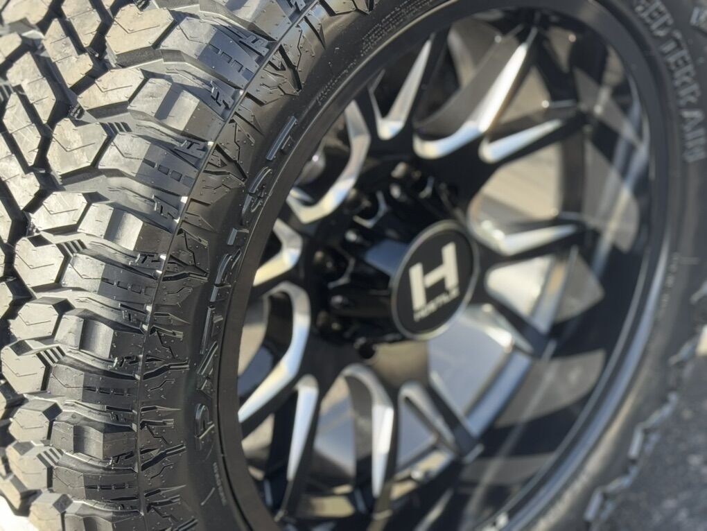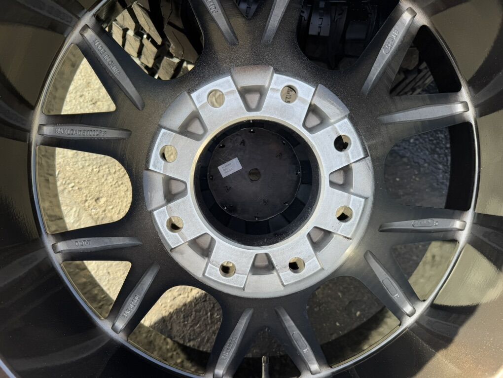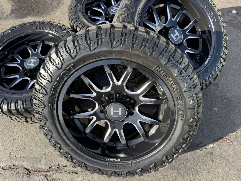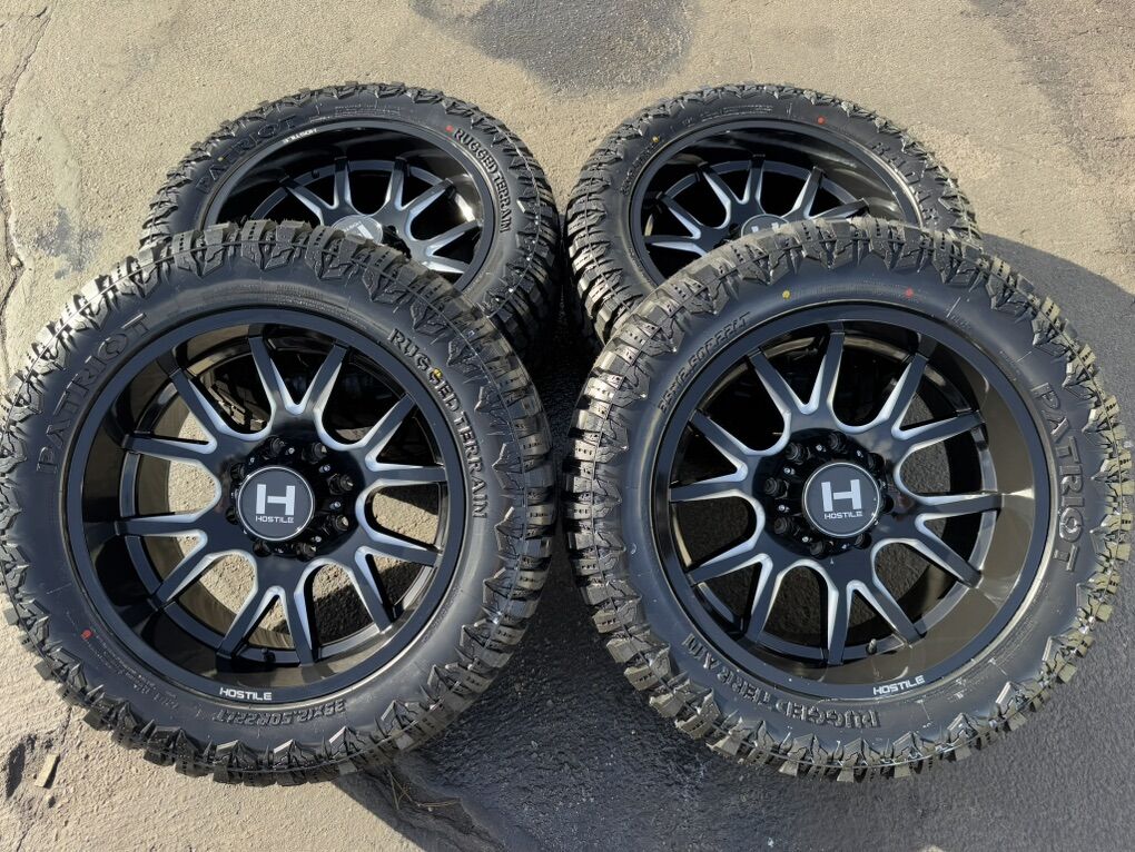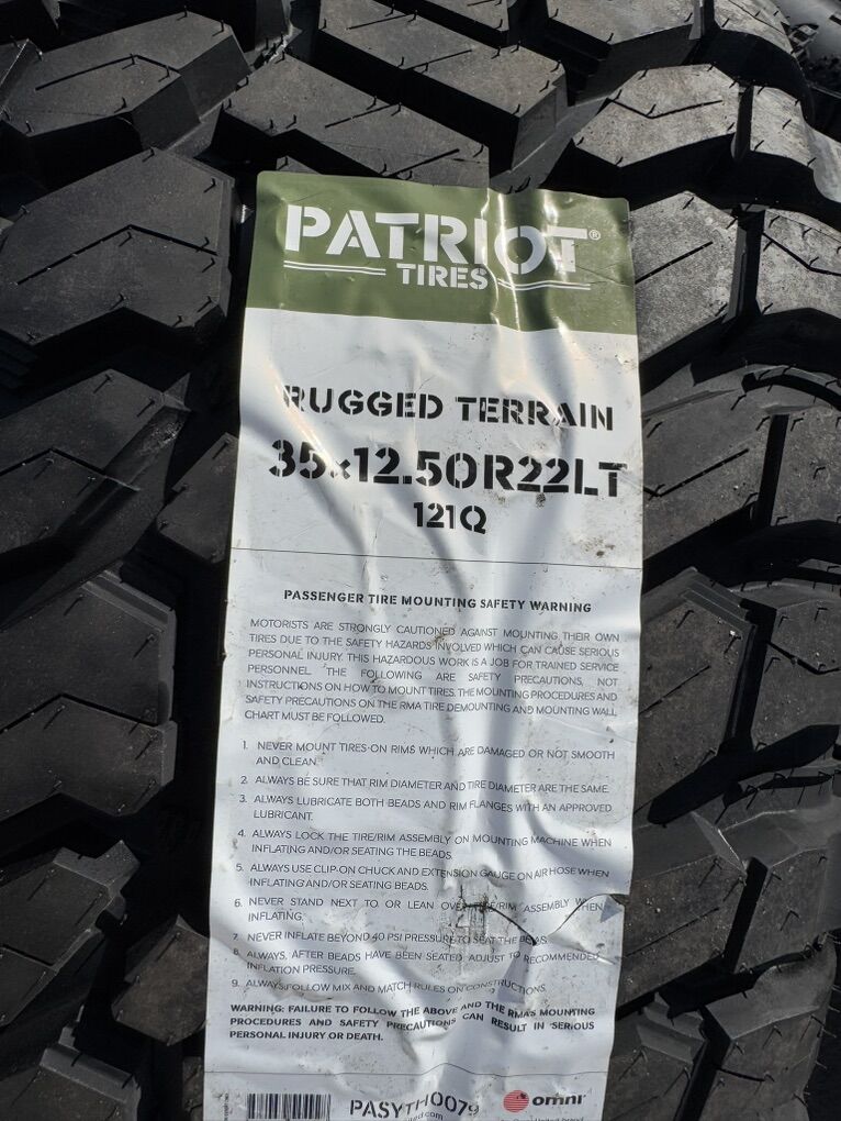 Brand new wheels and tires. Stickers still on everything, never mounted to a truck. Tires are Patriot R/T 35x12.50x22 12 ply Load Range F 121 load rating.