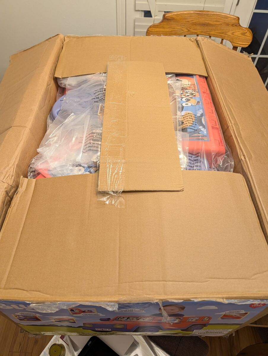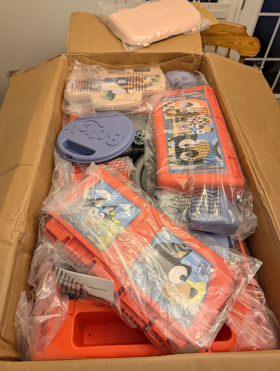 VenmoItem is new from a liquidation pallet. It is assumed to be working. Nothing has been removed from the original bags they were put in. Originally $216 Authentic Bluey Design: Modeled after the Heeler family vehicle for a fun and immersive ride, with outer windshield and windows feature character graphics, while the inside showcases Bluey world artwork for full immersion 12V Battery Power: Delivers smooth, reliable forward and reverse driving Interactive Steering Wheel: Features a destination spinner, show phrases, and songs for endless entertainment L 42" X W 28" X H 24" Weight Capacity: 66 lbs. Bring Bluey's World to Life Jump into adventure with the Bluey 12V Family Car Ride-On, a delightful replica of the iconic Heeler family vehicle. Designed for little fans of the beloved show, this 1-seater ride-on is packed with realistic details, including opening doors, a turning key, and working headlights. It's the perfect way for kids to immerse themselves in Bluey's world and explore their surroundings in style. Interactive Steering Wheel for Endless Fun The interactive steering wheel adds an extra layer of excitement to every ride. Featuring a destination spinner, show phrases, and songs, it transforms every drive into a Bluey-inspired adventure. Whether heading to the park or pretending to visit friends, kids will love the engaging features that make this ride-on truly special. Convenient Features for On-the-Go Play Designed with practicality in mind, the Bluey 12V Family Car Ride-On includes a snack tray and cup holder to keep essentials within reach during playtime. Built-in storage behind the seat and a removable spare tire toy storage case provide plenty of space for toys and treasures, ensuring kids are ready for any adventure. Bluey-Themed Graphics and Smooth Ride Complete with vibrant Bluey-themed graphics inside and out, this ride-on captures the charm of the show while delivering a smooth driving experience. Powered by a 12V battery, kids can enjoy forward and reverse driving with ease, making every journey as fun and magical as Bluey's adventures.