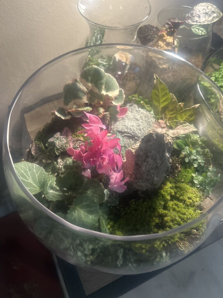 Beautiful mid size terrariums. Multiple plants, decorative rocks and moss. Perfect for gifts or at the house or office. Bring Mother Nature inside to you
