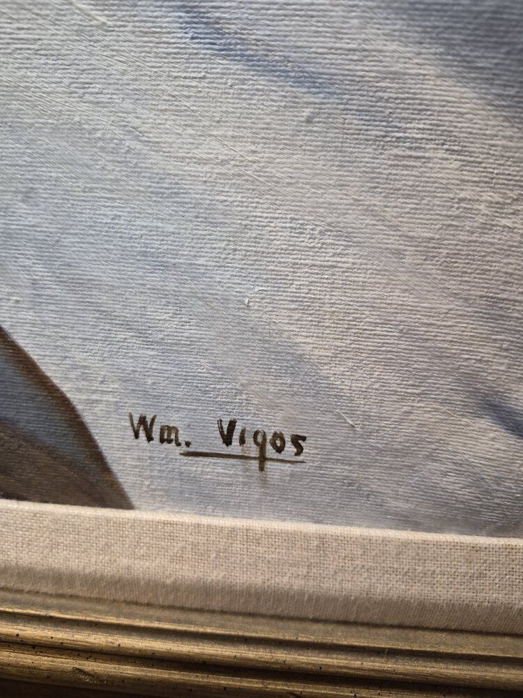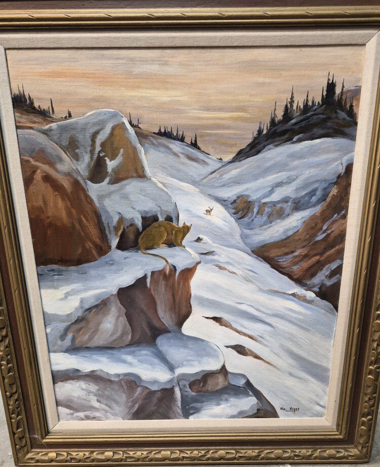 VenmoMountain lion watching a deer in snow. Original art by WM Vigos. large framed painting 150⁰⁰ obo text me is best