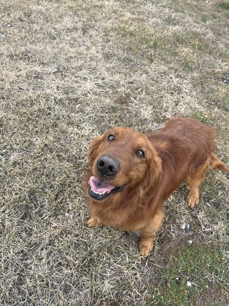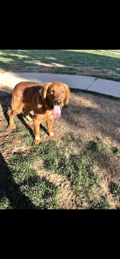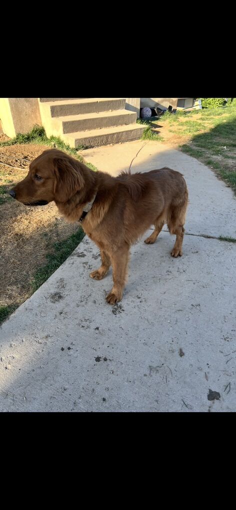 VenmoMeet Ruegar Ruegar is a purebred golden retriever he is two years old and still intact. He’s lived primarily outside his whole life, he is fully kennel trained. he is great with kids, can be a little shy at first greeting with people but very friendly. He gets along with almost all female dogs but not a great history with male dogs, and I would not recommend him living with other male dogs or being around them. We are looking for a great home for him that will give him all the time and attention that he deserves. He is up to date on all shots/deworming/prevention. He can be territorial with other dogs around his kennel or his bowl. We have another male golden and they have to live completely separate and it’s just a hard life to live. He would benefit from being neutered because his hormones heighten those behaviors.