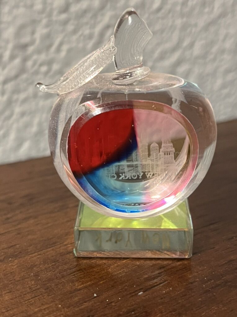 The crystal is multicolored and designed as a souvenir of New York, often called the Big Apple.