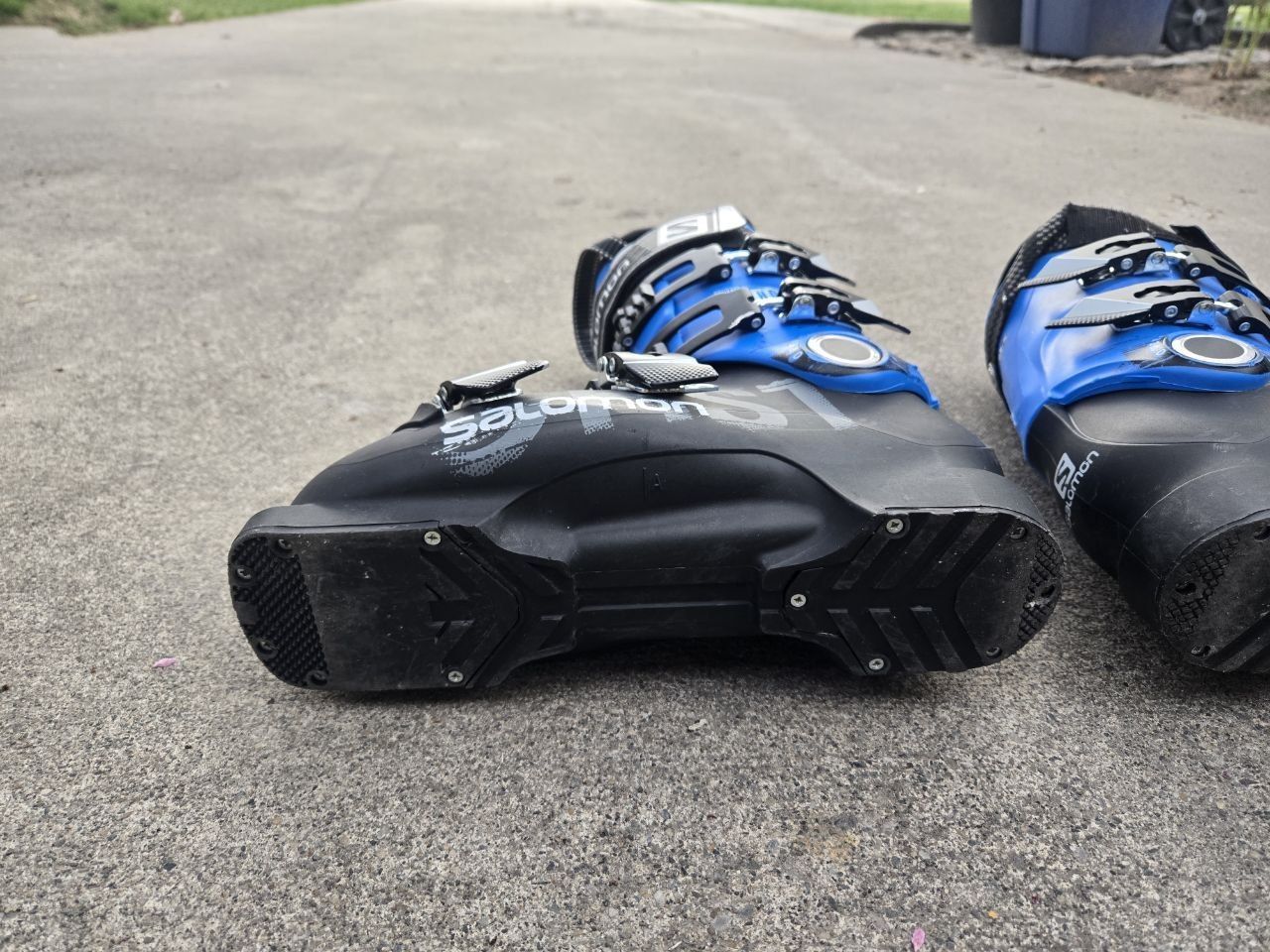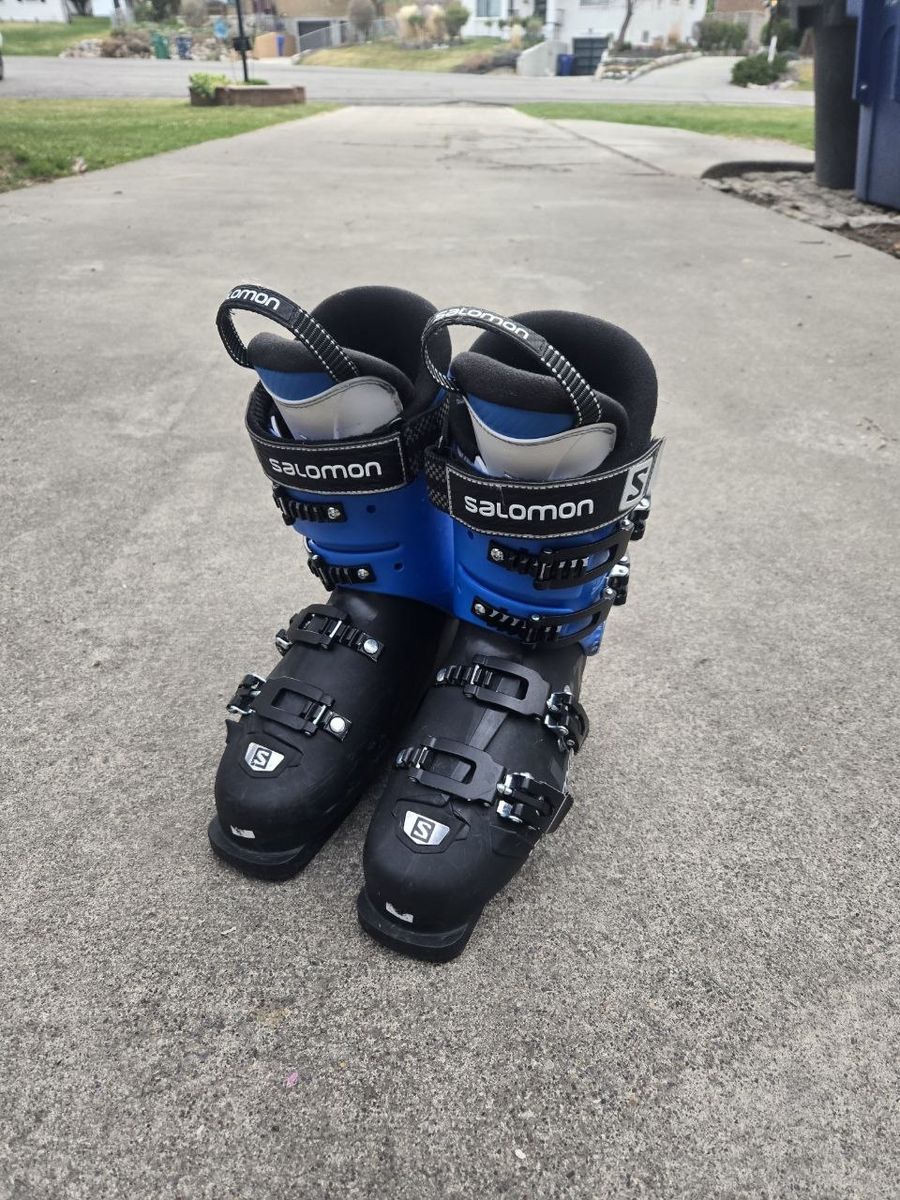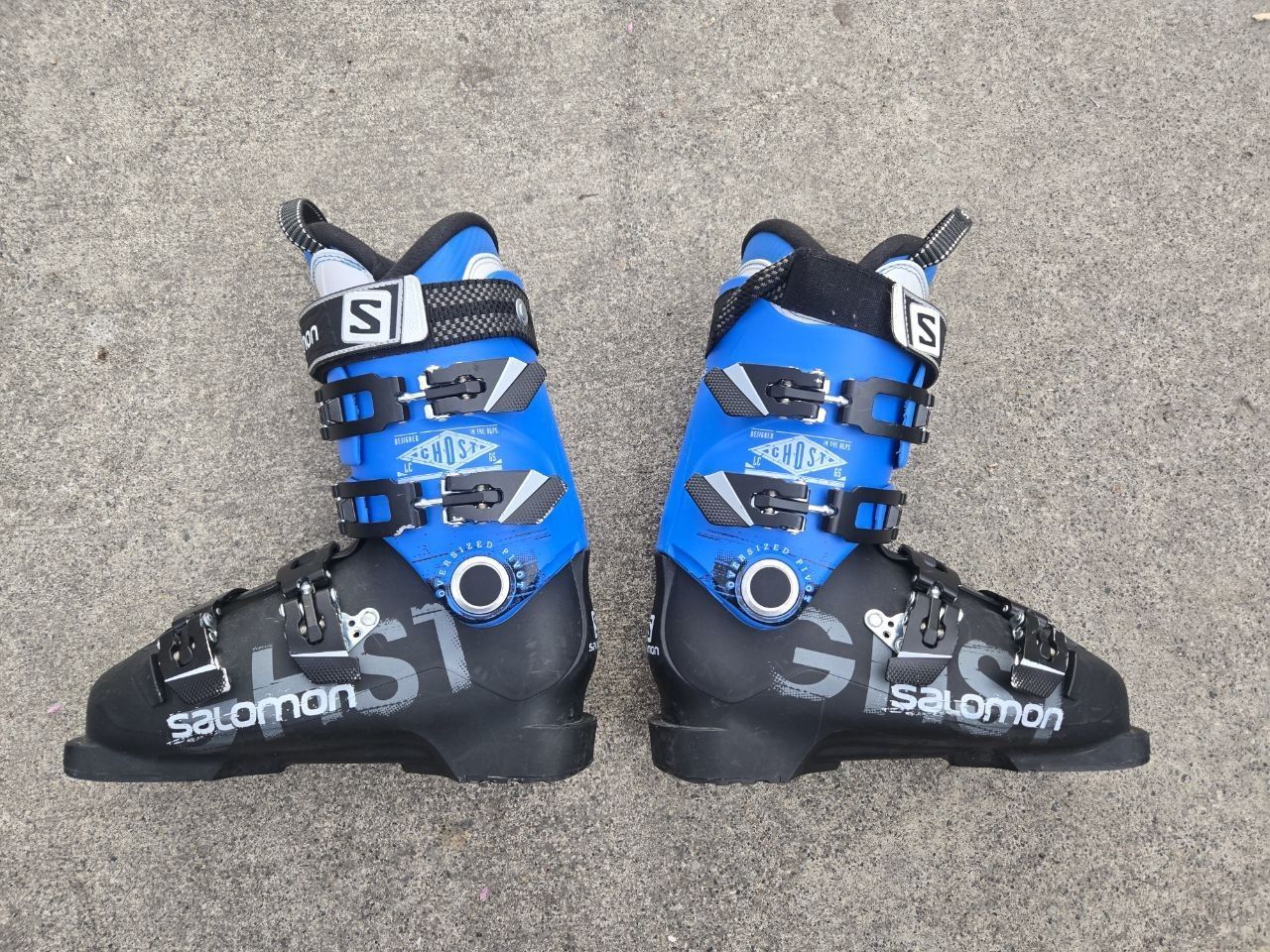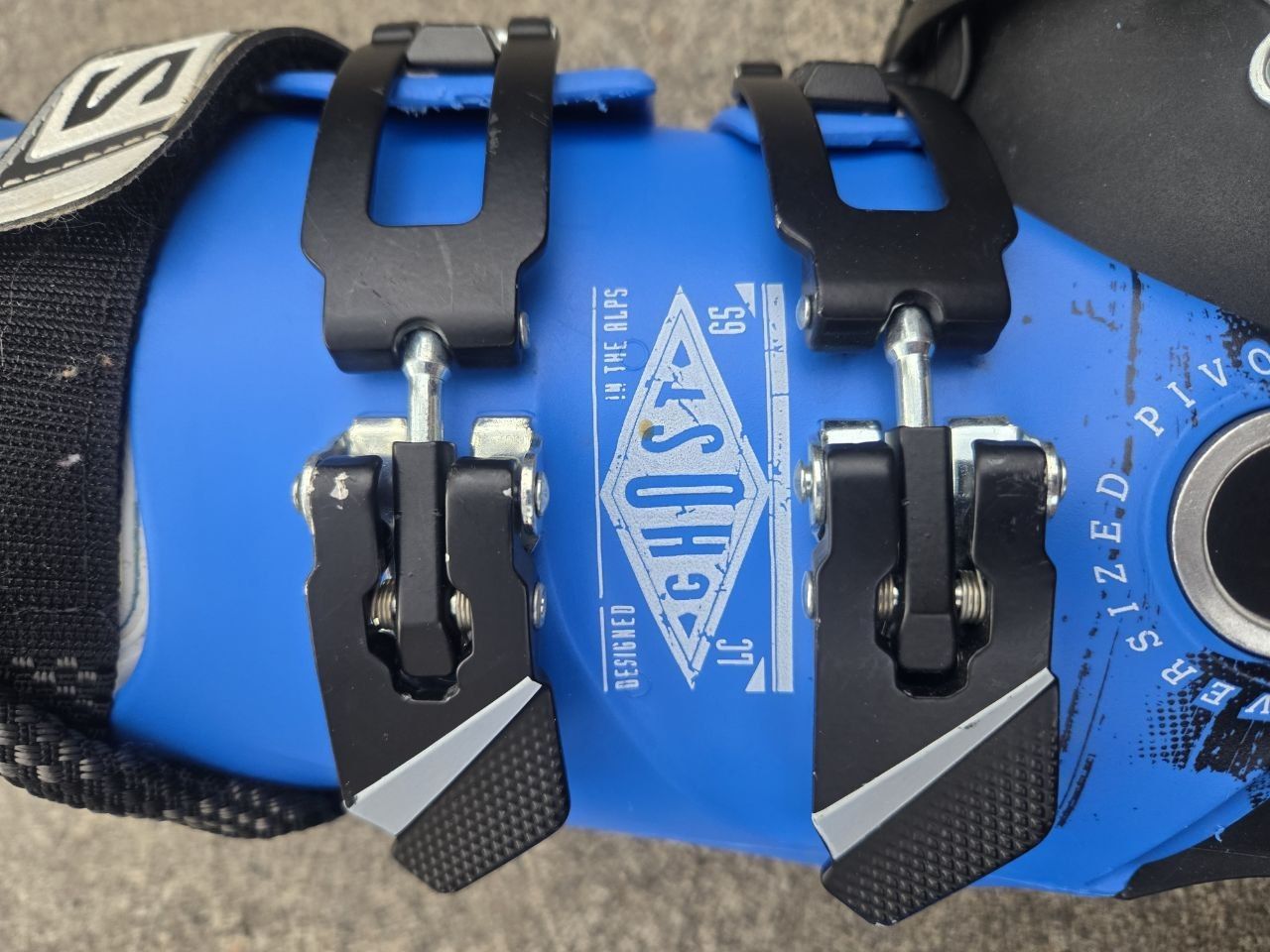 VenmoSalomon Ghost LC 65 downhill ski boots. Sole length 295mm or Mondo Point 25-25.5 which is a Men's/boys shoe size 6-6.5 or Women's 7-7.5 shoe size. Flex 65. Elasticized power strap for maintaining constant cuff/shin contact and 4 adjustable buckles. Text please.