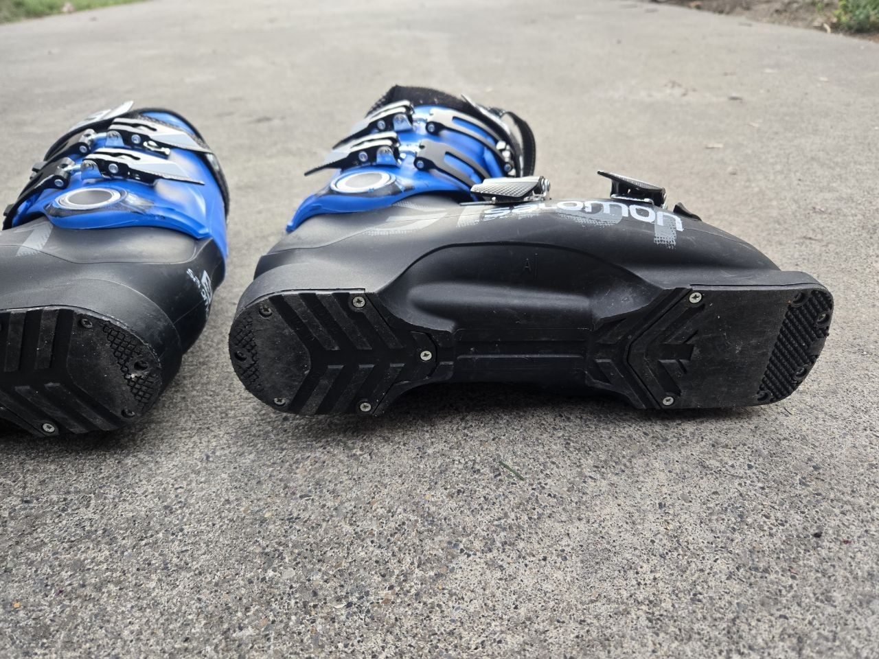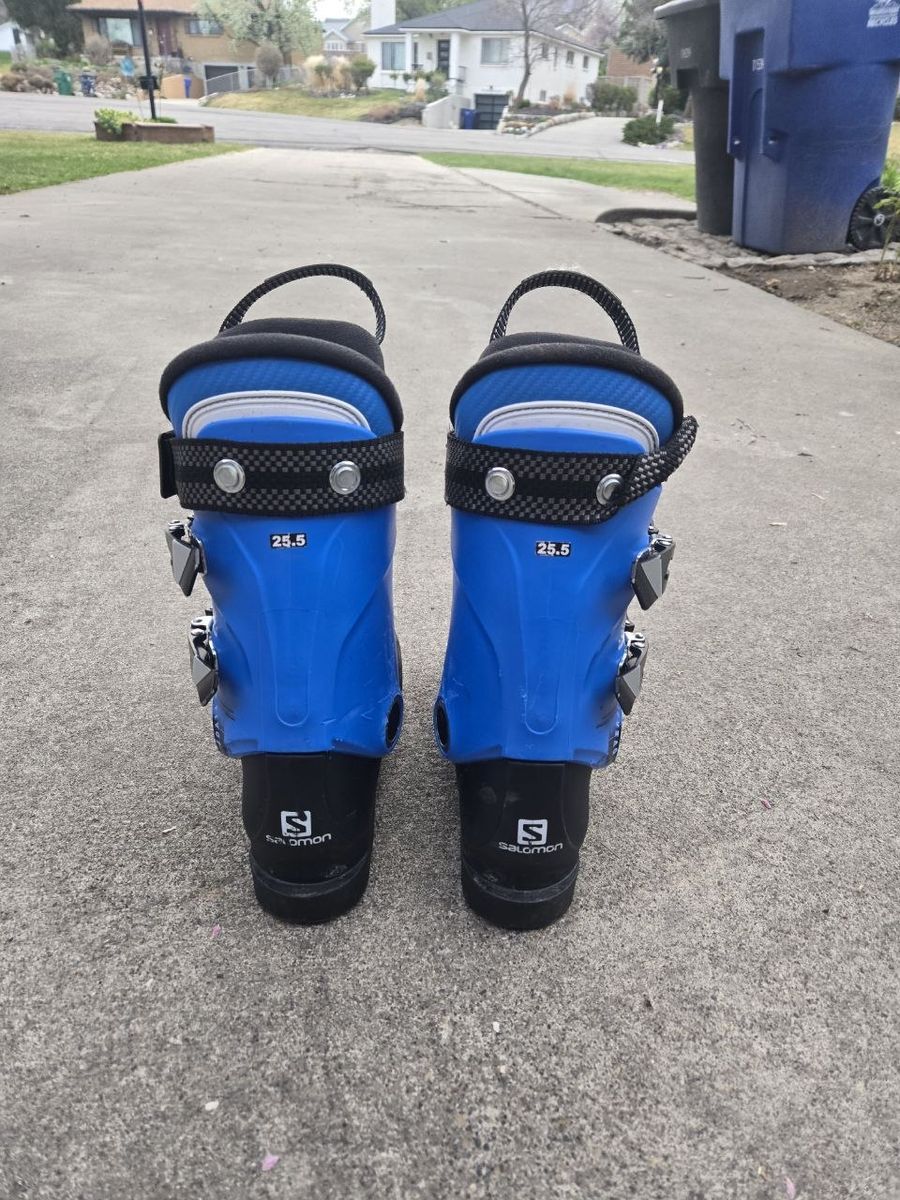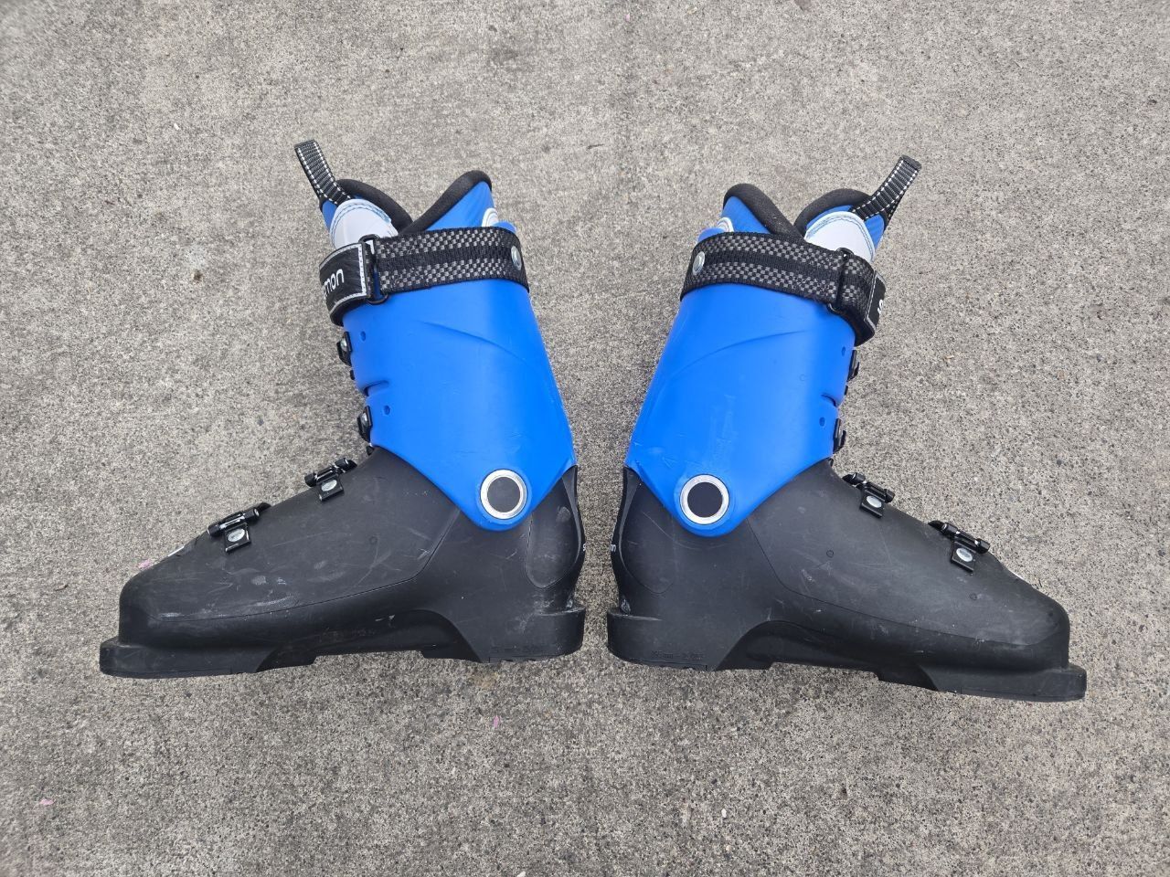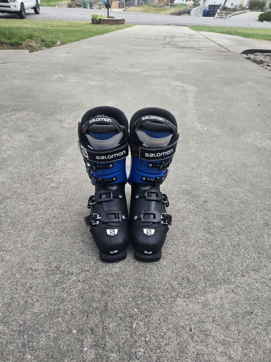VenmoSalomon Ghost LC 65 downhill ski boots. Sole length 295mm or Mondo Point 25-25.5 which is a Men's/boys shoe size 6-6.5 or Women's 7-7.5 shoe size. Flex 65. Elasticized power strap for maintaining constant cuff/shin contact and 4 adjustable buckles. Text please.