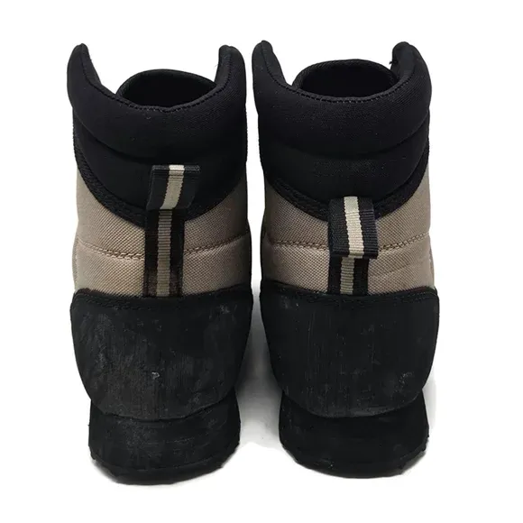 Features sturdy construction, ankle support, reinforced toe, and grippy soles for traction on wet surfaces.