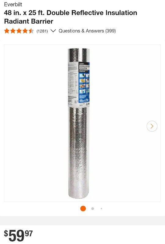 Venmo48 in. x 12 ft. ( I rolled it out to measure it) Double Reflective Insulation Radiant Barrier.
