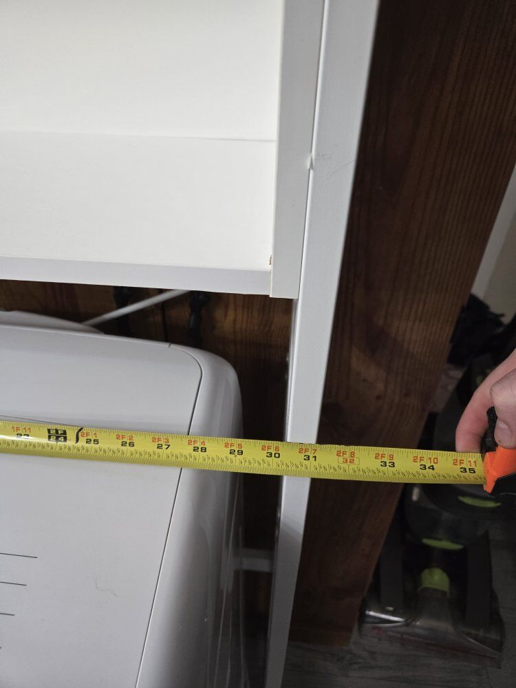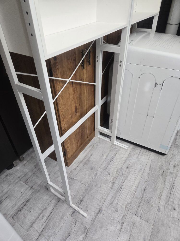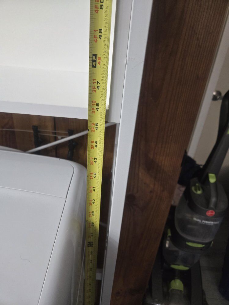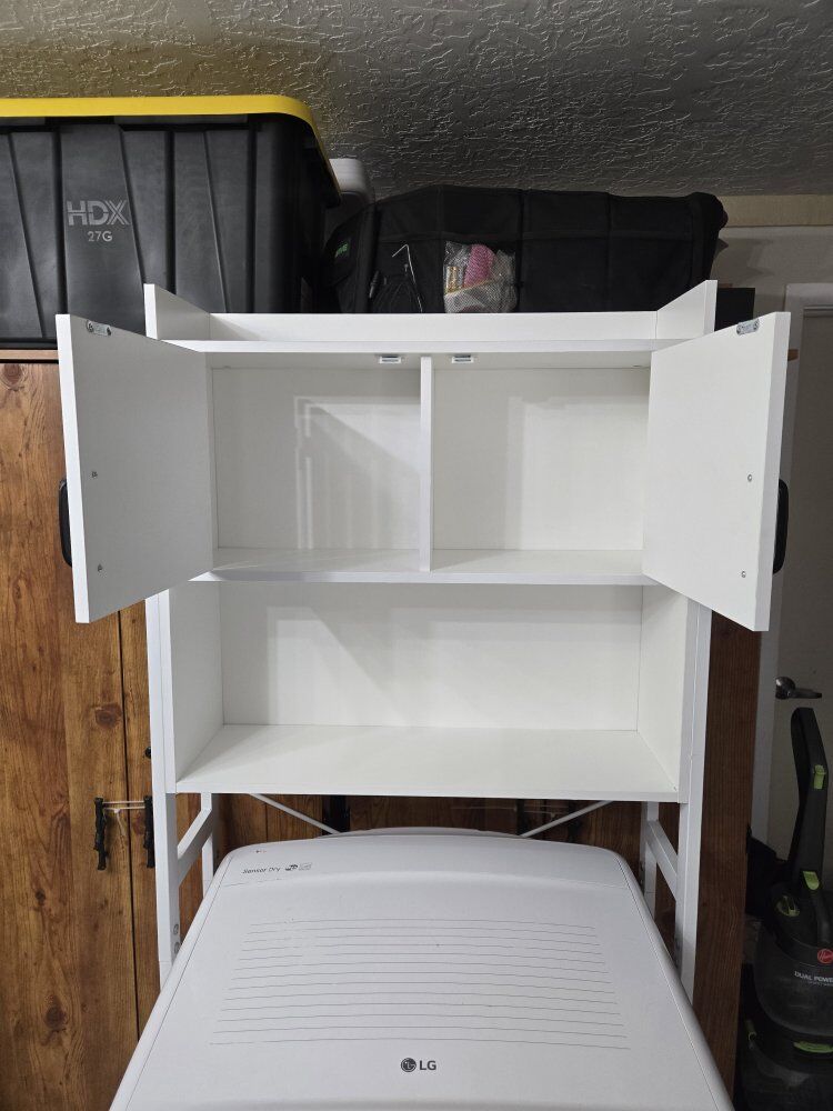 Venmothis cabinet is in pre-owned acceptable condition. It is being sold as is for pick-up only. Has some small imperfections and 1 small cracked piece still fully functional (refer to photos) width (for washer or dryer opening) 30" height (for washer or dryer opening) 45" overall height 74 1/4"