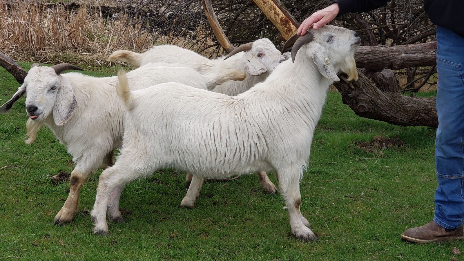 3 yearling bucks, born last year February 2025. One fullblood savanna and 2 bucks that are 88% savanna with 12% boer. Full clean tested herd. Their sires came from Texas and Missouri. Registration papers upon request. Just wormed and updated on CDT.