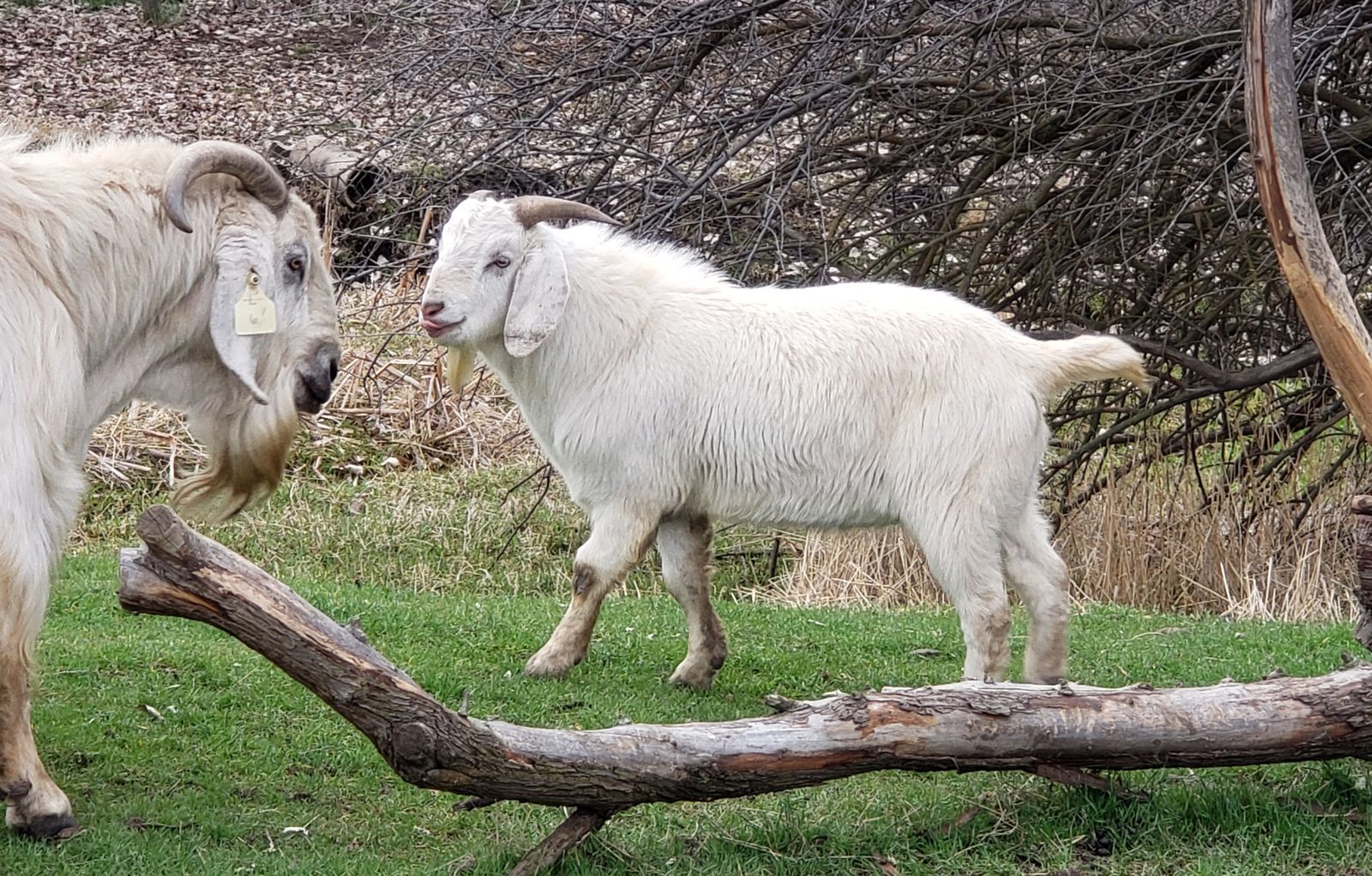 Savannas are a meat goat cousin of the Boer goat. They come from South Africa, developed partly from some wild indigenous white goats with good parasite resistance, stronger hooves, quick rate of gain, and excellent mothering abilities. Savannas create true hybrid vigor for your meat goat herd. They were brought to the United States about 25 years ago and have limited availability.