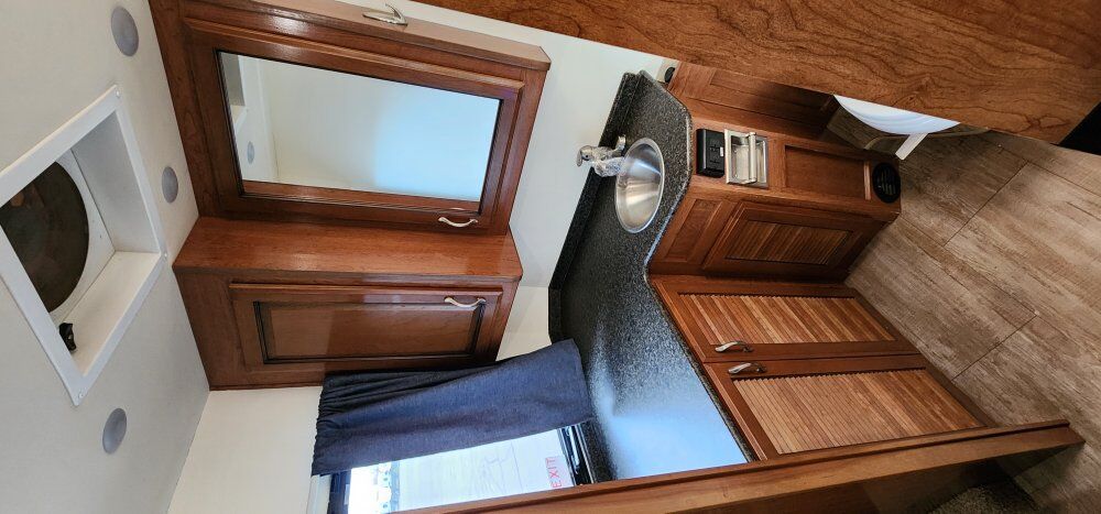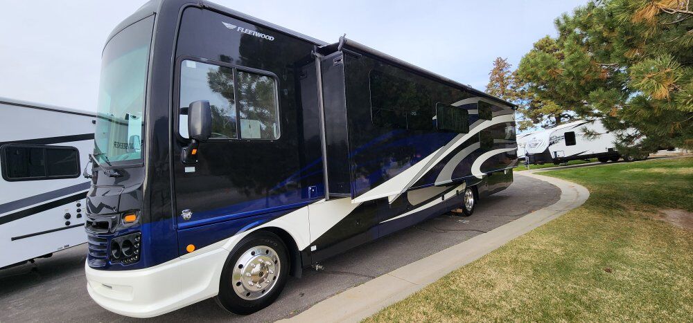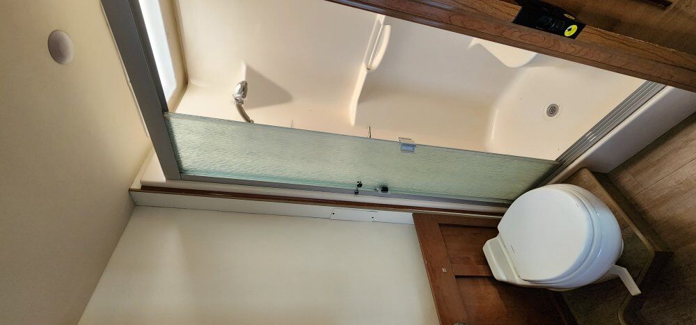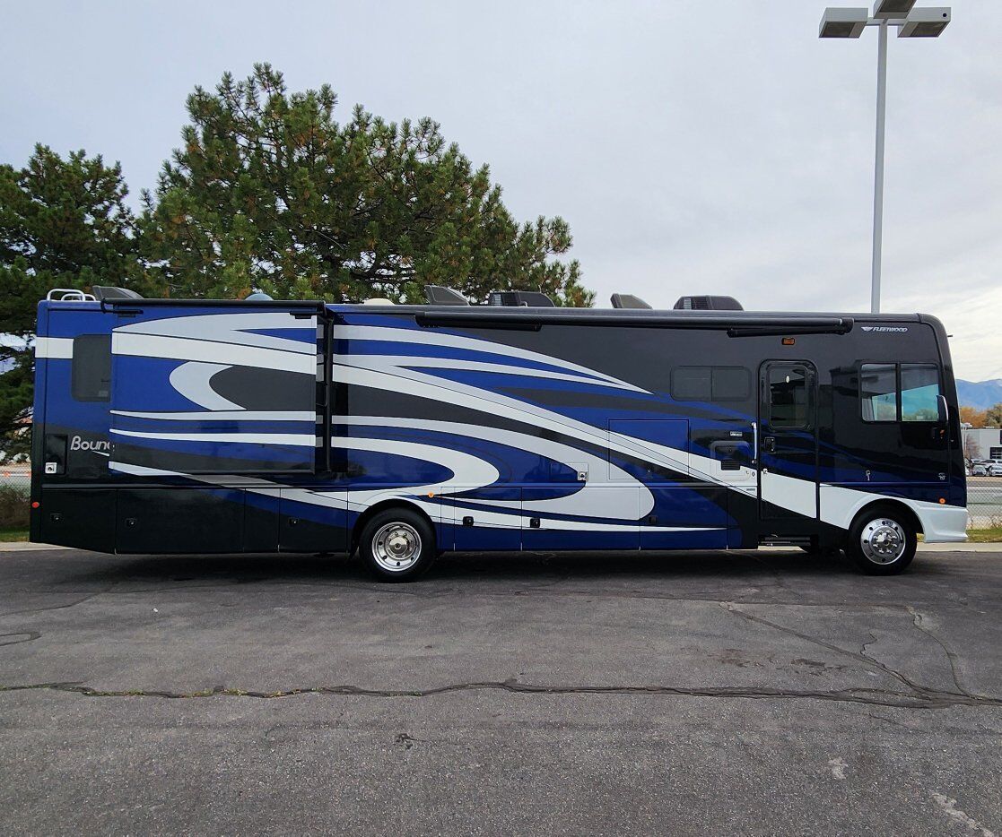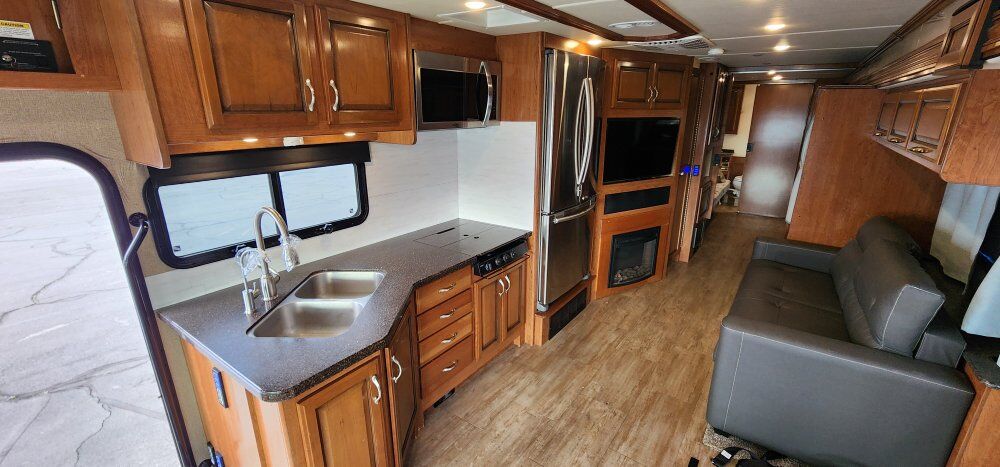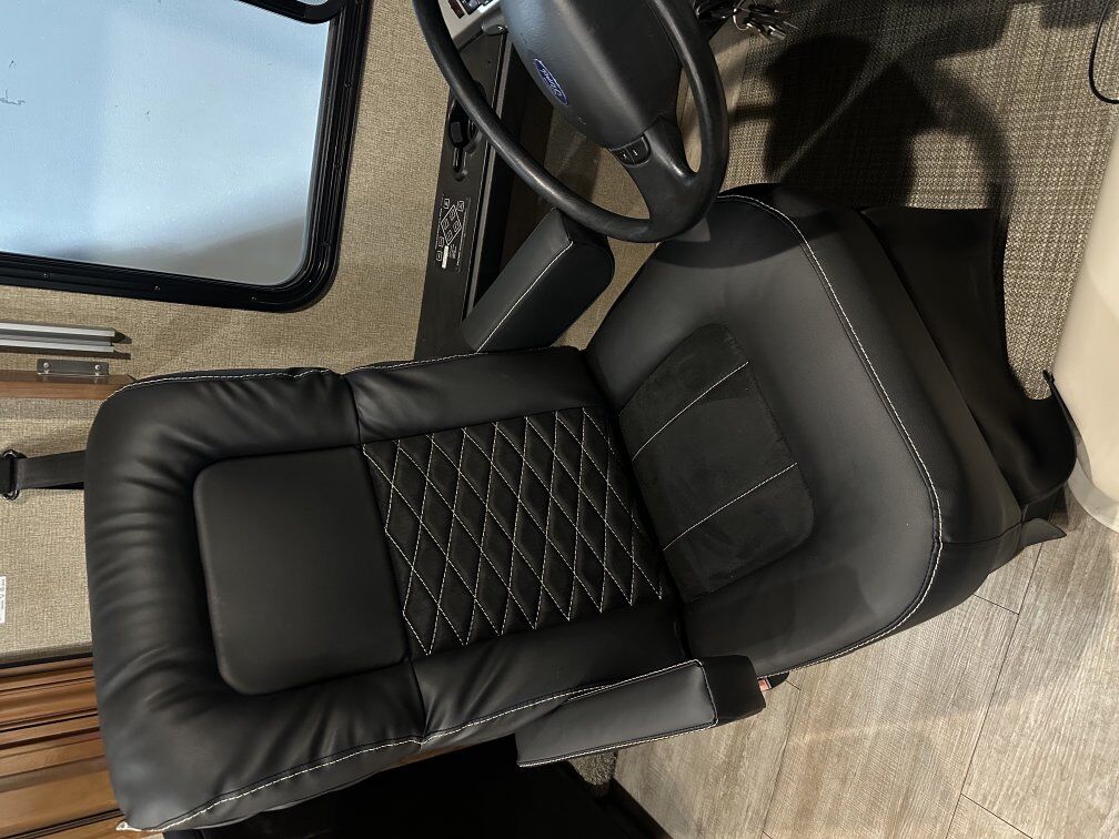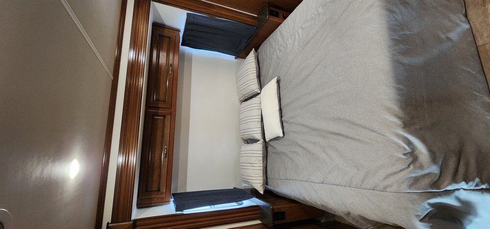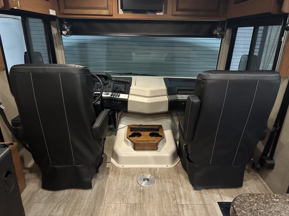 The coach is powered by a Ford V10 with 69k miles on an F53 chassis and 325HP motor that can tow 8,000lbs. Has a 5500w on board gen with an 80 gallon fuel tank and a 100 gallon fresh water tank, 90 gallon gray tank and 50 gallon black tank.