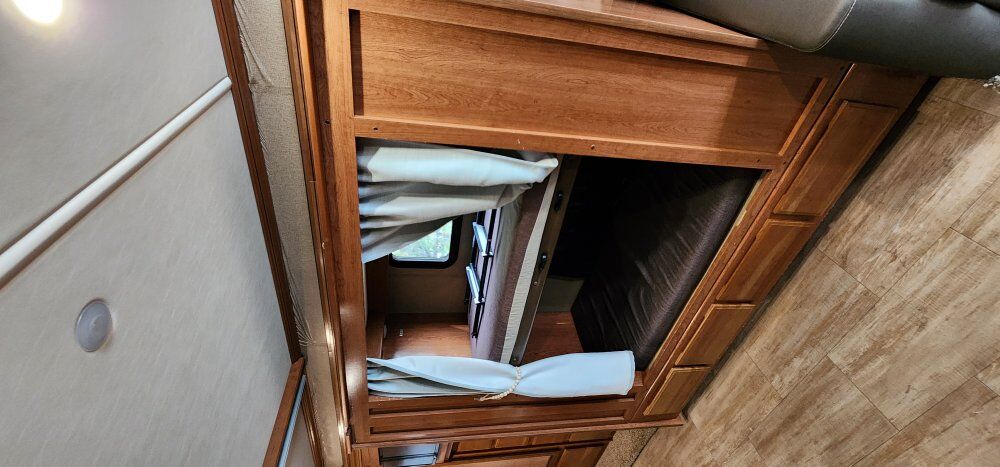 This is a bunk model with beautiful full body paint on the exterior. The outside has tons of basement storage, good tires, tow hitch, rear camera, clean windshield....really nice exterior.