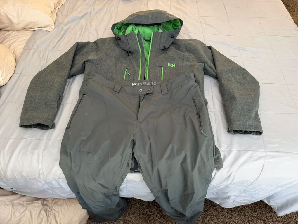 VenmoSelling a like new, Helly Hansen men’s ski/snowboard jacket and pants set, size XL for the coat and XXL for the pant. The jacket is the Juniper II model and the pants are matching Helly Hansen insulated ski pants. Bought them new about 7 years ago, used for one shortened season, got busy with kids, got fat, now it doesn’t fit, which is why they are almost new. Small marks on the pants (see picture) the coat is flawless including all zippers and hood.