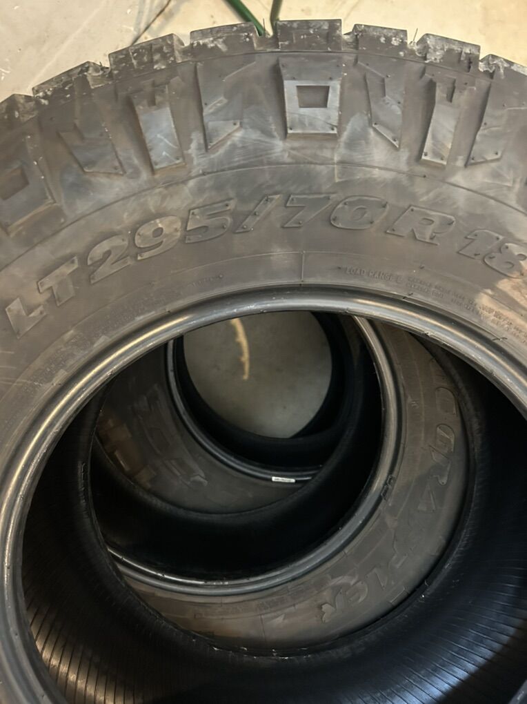 (4) 295/70 R18 Nitto Ridge Grappler, 34 x 11.50, 10 ply. Less than half tread, but still decent, no patches, no plugs. $400/offer.