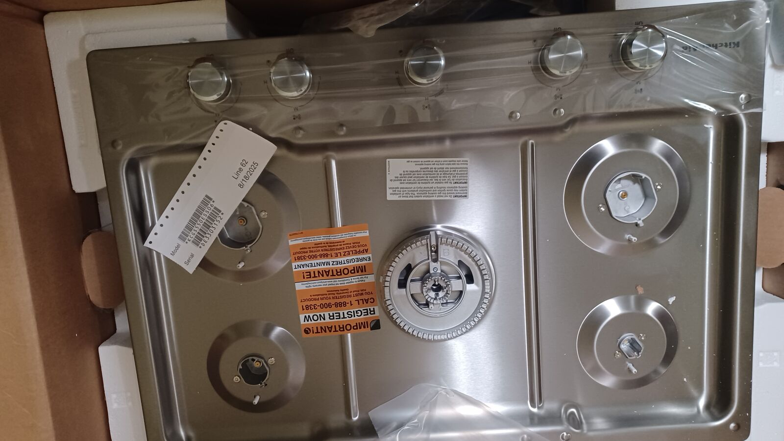 30 in. KitchenAid gas cooktop gives you exceptional power with five individual burners, including a powerful 17000 BTU dual-ring burner. For added versatility, the Even-Heat 6000 BTU simmer burner creates ideal conditions to melt without scorching. The CookShield finish helps protect the surface against the discoloration that may occur due to high-temperature cooking.
