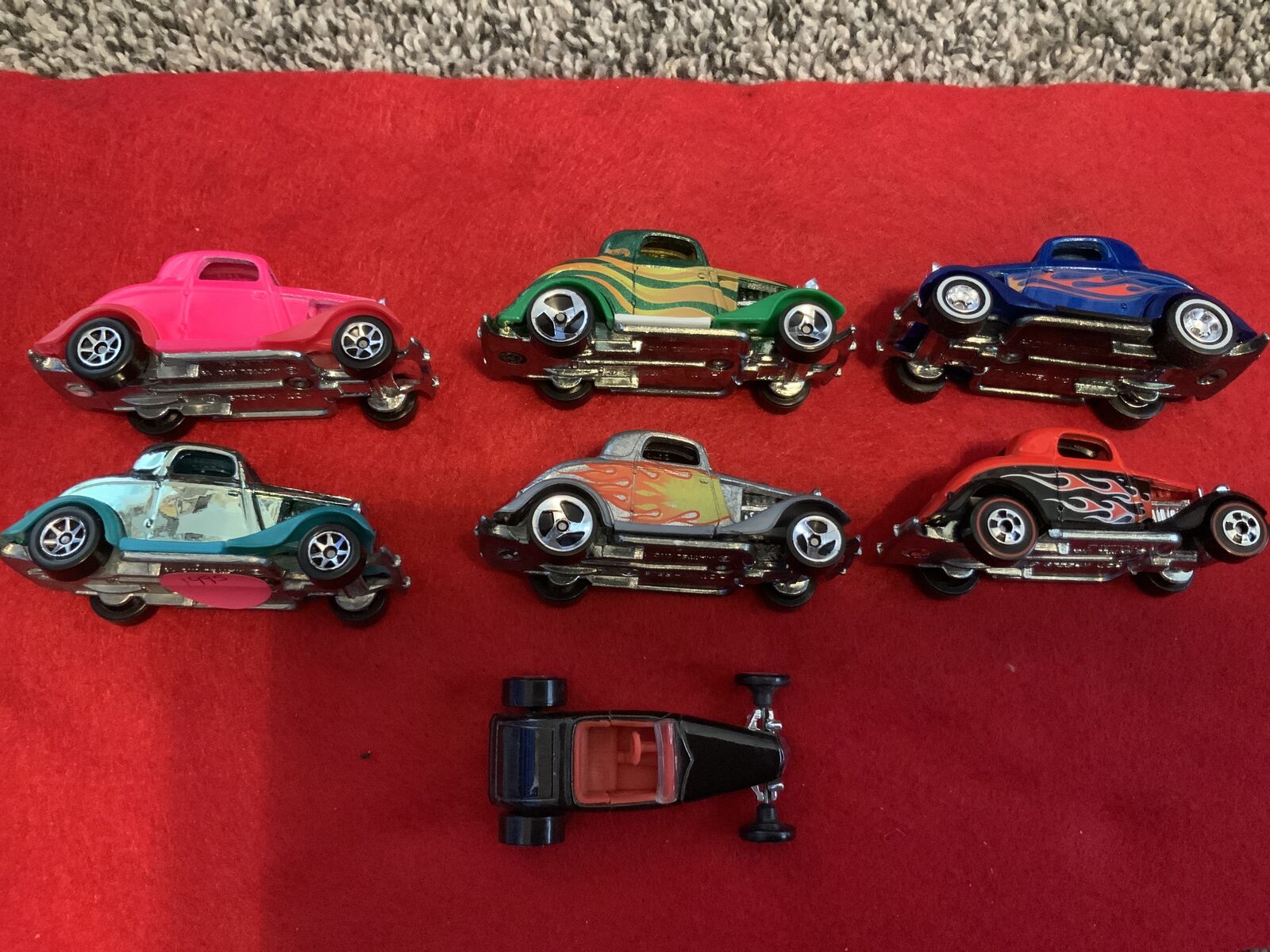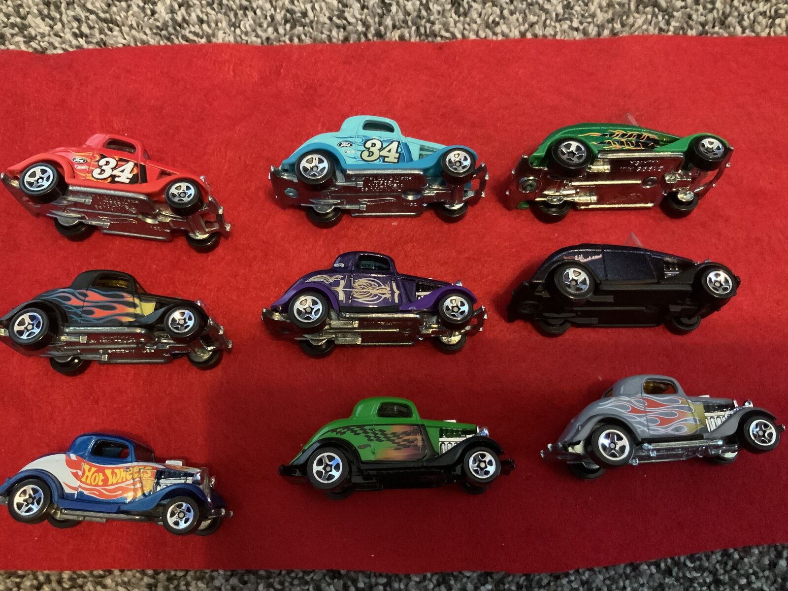 This is a collection of 24 1934 Ford Hot Wheels. They are mostly vintage cars from 1980 and up. Three are Matchbox cars and are recent cars. I am asking $150.00 for this collection. The '34 Convertible, black fenders and color changing paint is a custom. Please look at the photos. This is a great collection. I live in Nephi and I like texts and cash.