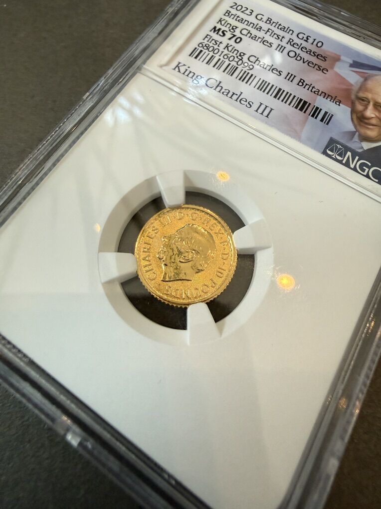 2023 GOLD KING CHARLES 1/10 oz GREAT BRITAIN BRITANNIA COIN NGC MINT STATE 70.