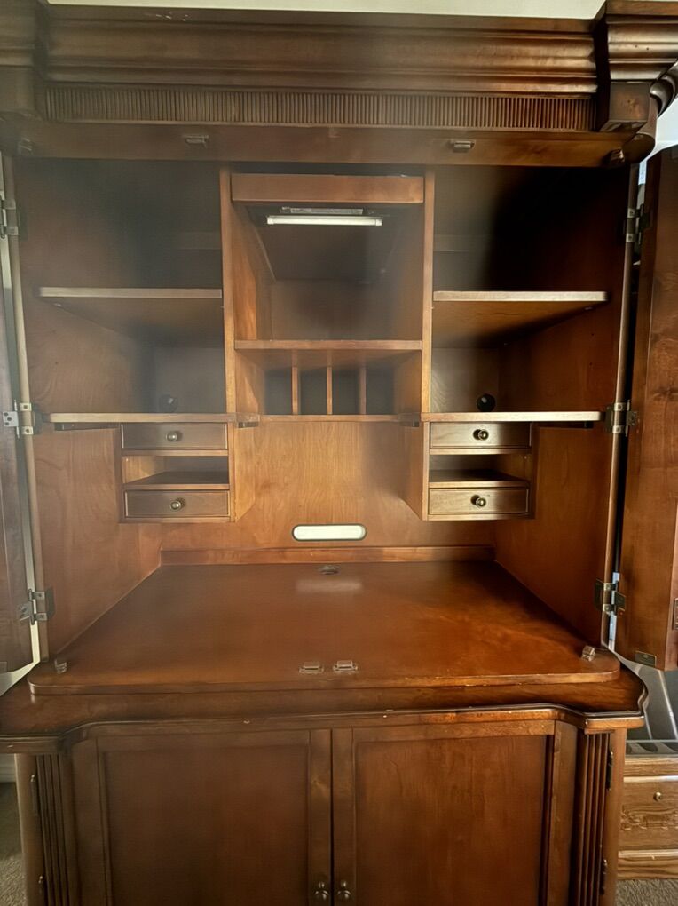 VenmoBeautiful Bassett Furniture executive desk. This is a lovely piece originally paid $4000. We’ve had it in our home for 16 years. There are a few small nicks but everything is solid and secure, no loose screws and basically seems brand new apart from the tiny few nicks. It comes in two parts. Selling because we don’t have the space.