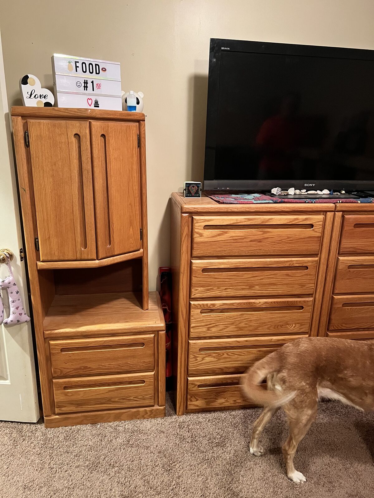 VenmoSelling as a set. Two dressers, headboard and two side towers.