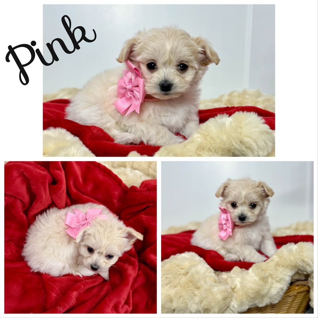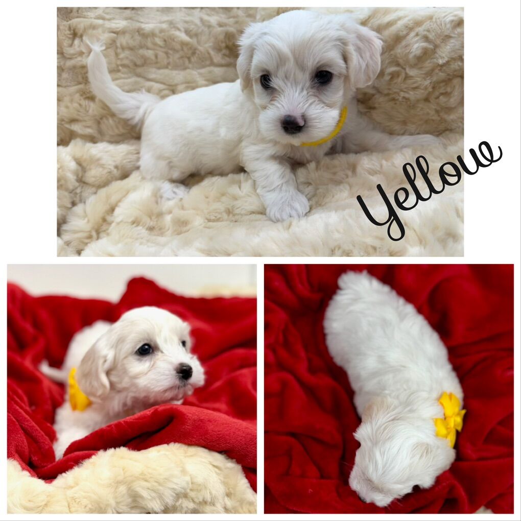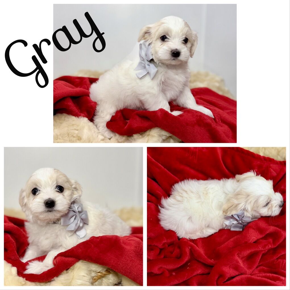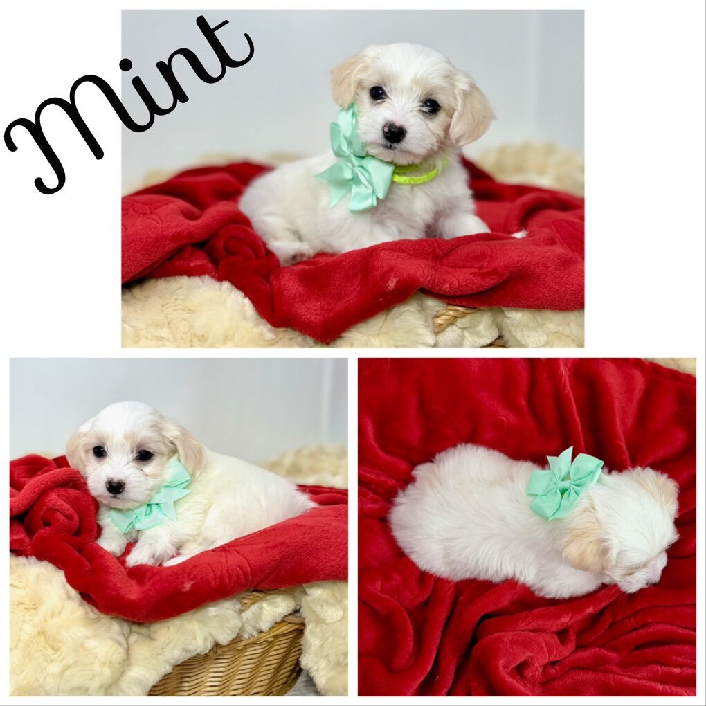 About the Puppies: • White & cream bicolor • Soft, fluffy coats • Hypoallergenic & low shedding coats • 75% Maltese / 25% Poodle • Estimated adult size: approximately 7–12 lbs • One petite female estimated 4–7 lbs as an adult • Sweet temperaments and well-socialized