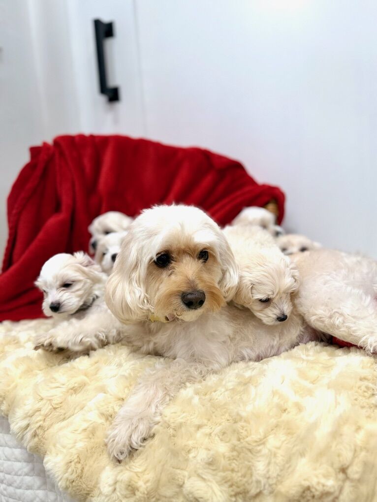 We have a beautiful litter of toy designer Maltipoo puppies available, born December 2nd and currently 10 weeks old. These puppies are being raised in-home with lots of love, socialization, and hands-on care.