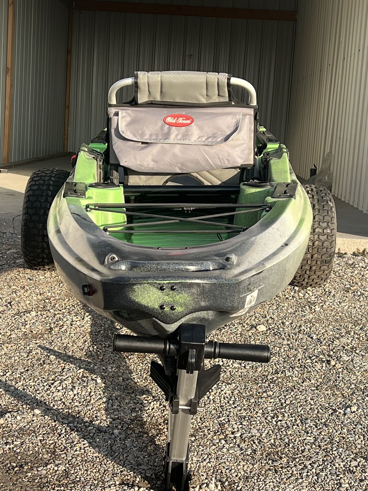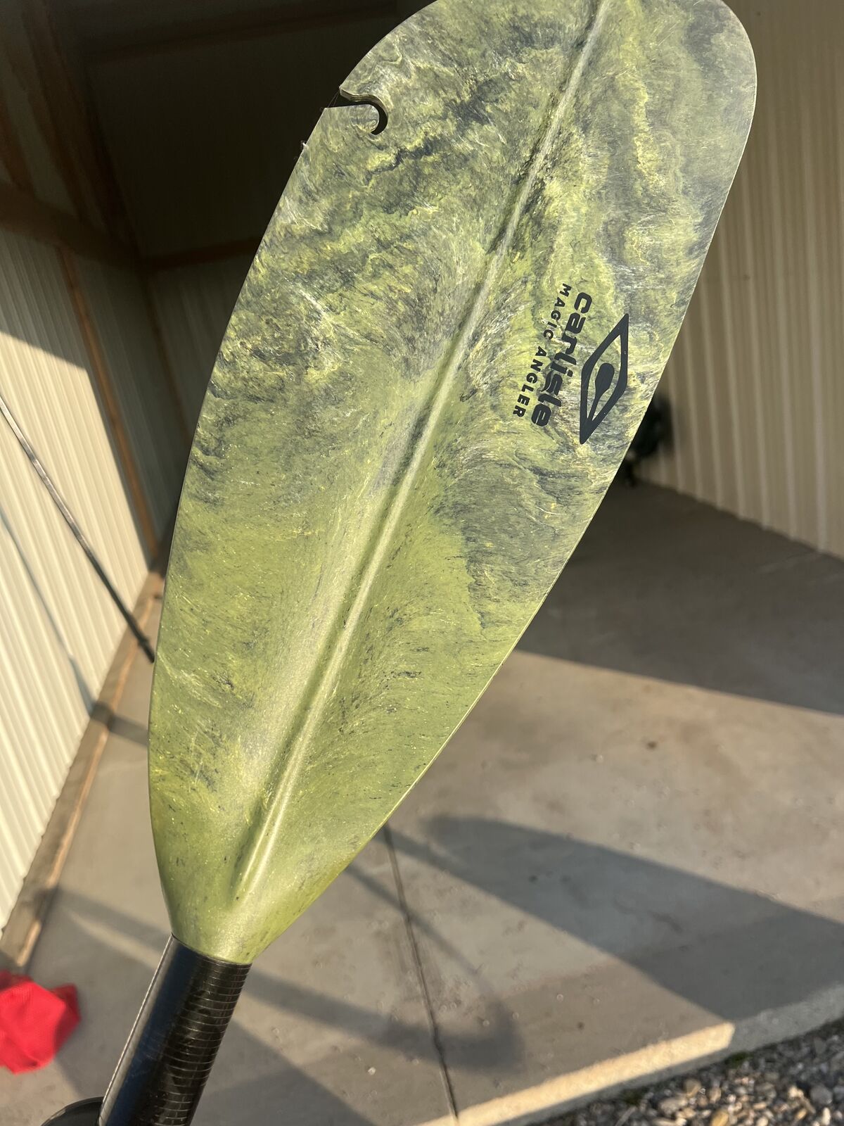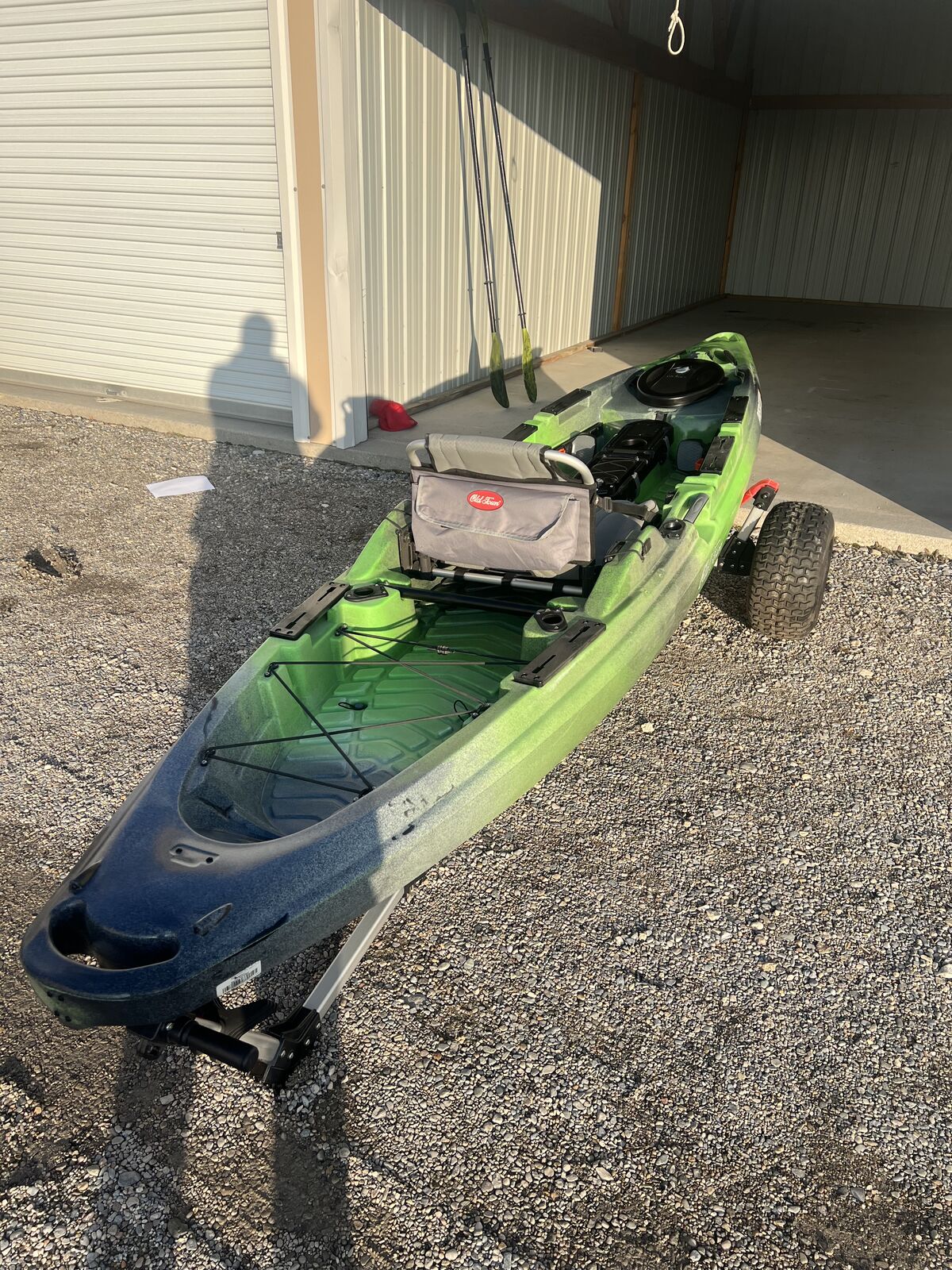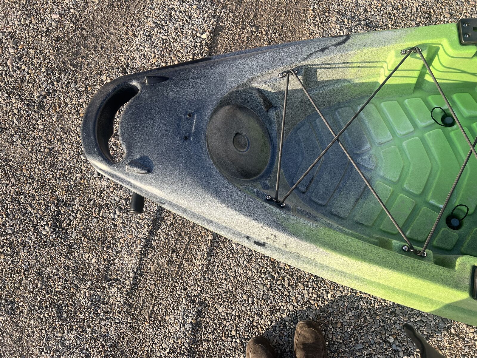 Kayak was originally purchased from Al's Sporting Goods in Logan. It was only on the water three times. This kayak was always stored in a storage facility in Smithfield, out of the sunlight and out of the weather. I never drilled any holes to mount accessories or tampered with it in any way. This stunning kayak is bone-stock. It's truly in pristine condition. Includes the uninstalled paddle mount and a color matched Carlisle paddle, in Lime Camo. A new, modern day equivalent kayak and paddle would cost you well over $1,600.00 dollars.