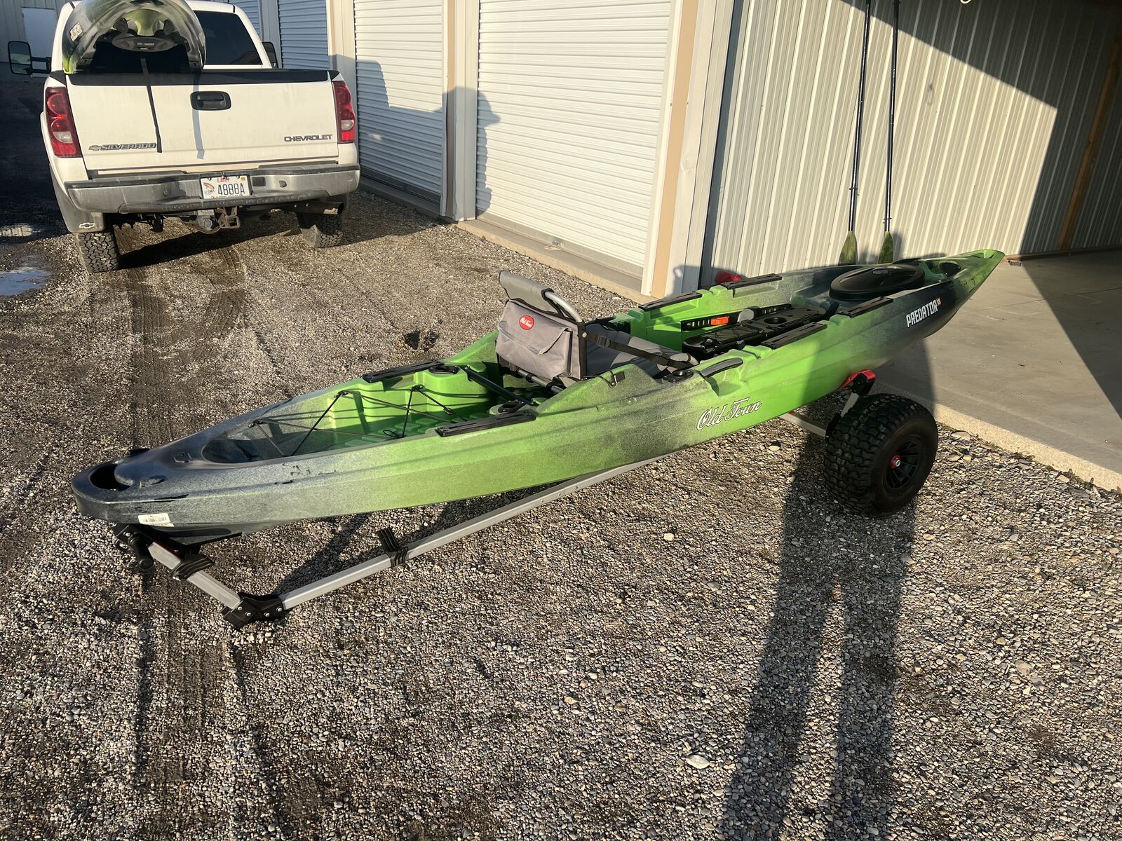 Old Town Predator 13 in "First Light". This Kayak was never put in the water. First Light was a very limited color that has long since been unavailable.