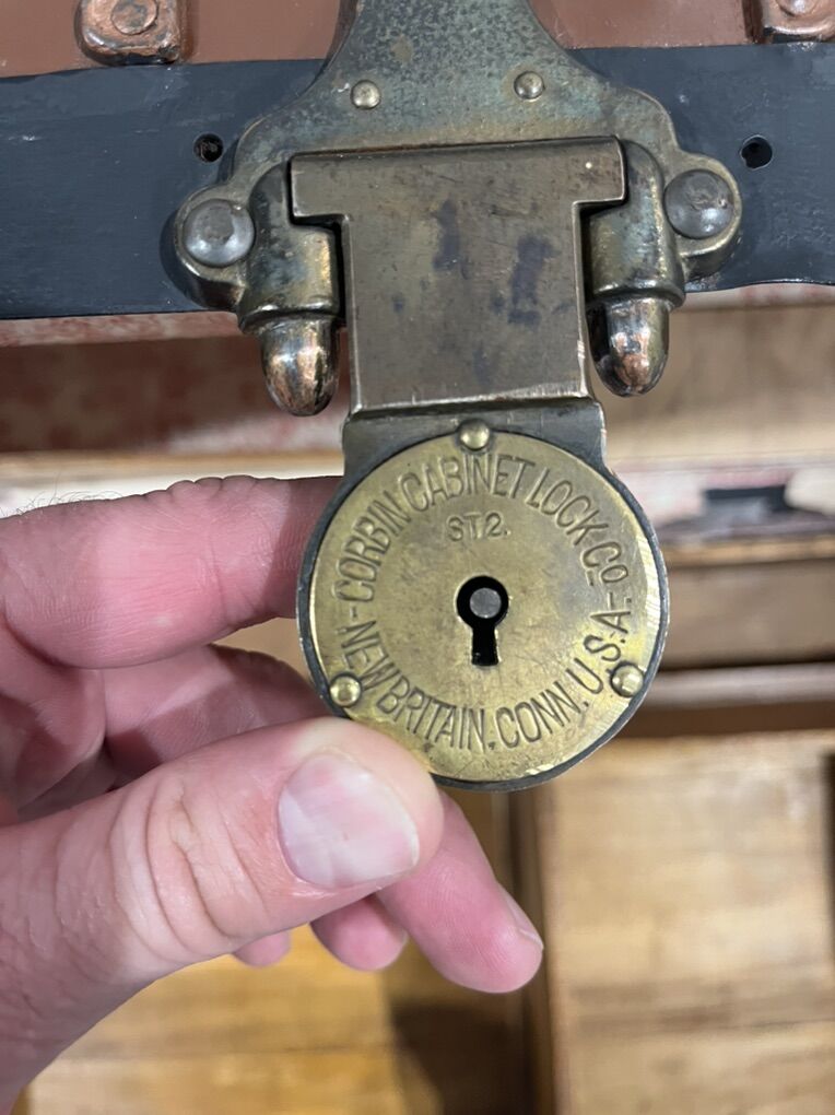 Antique Dome Top Trunk Hardware is Corbin Cabinet & Lock No Key