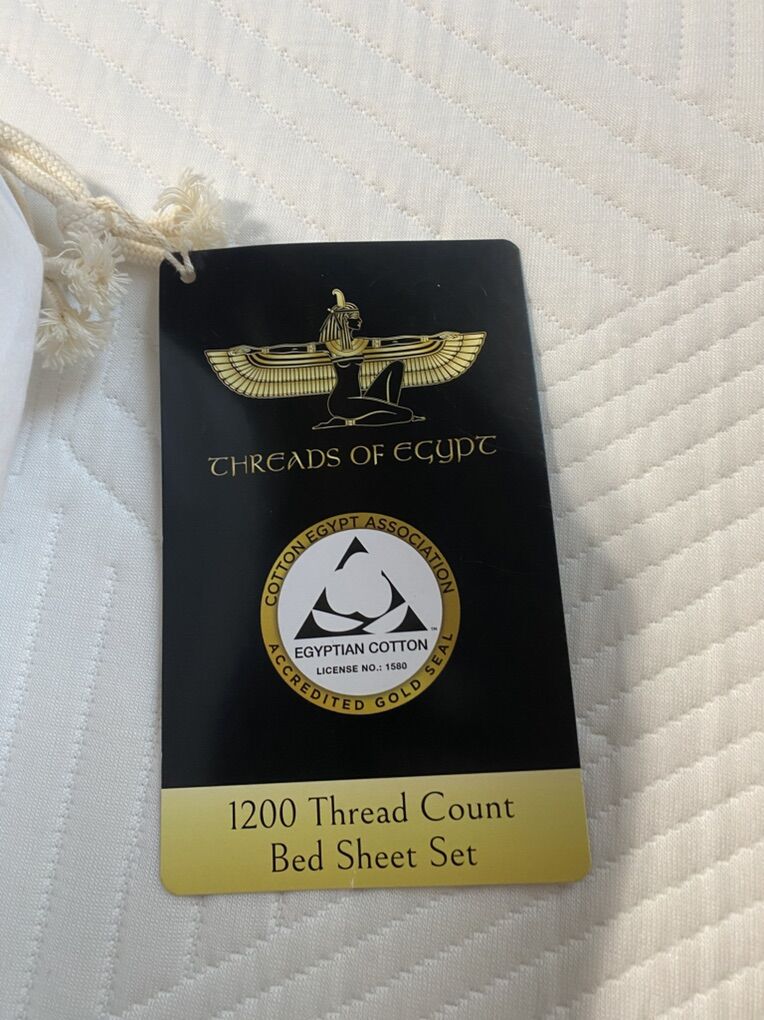 Brand New White Split King Threads of Egypt 1200 thread count sheets. We were going to use them with split king mattresses we were given but decided not use them mattresses. Comes with two fitted sheets, one large king top sheet and 2 pillow cases.