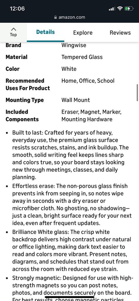 Large Glass Whiteboard, 72 x 48 Inches Magnetic