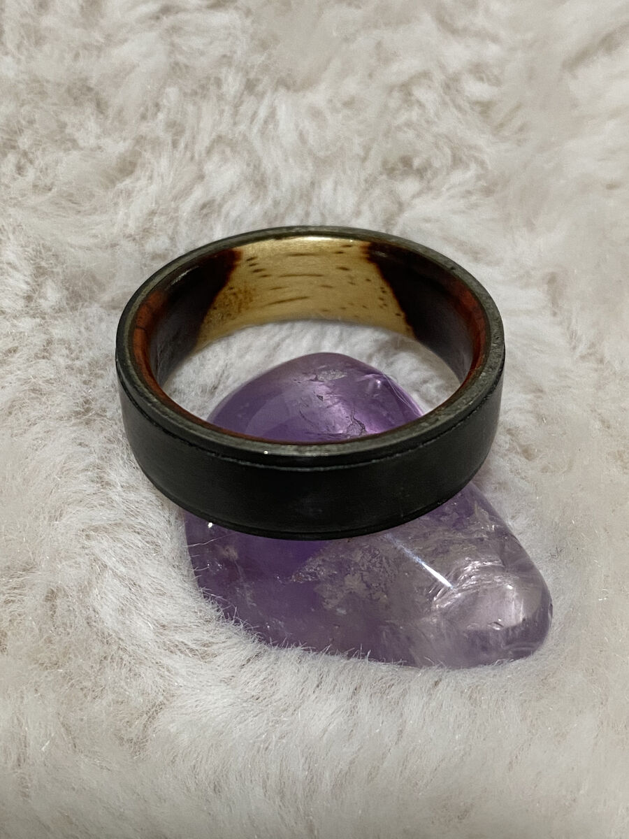 ApplePayBeautiful Black Zirconium Wedding Band with Stunning Wood Sleeve. Very durable, simple but elegant. Retails for ~$700. Size 13.25