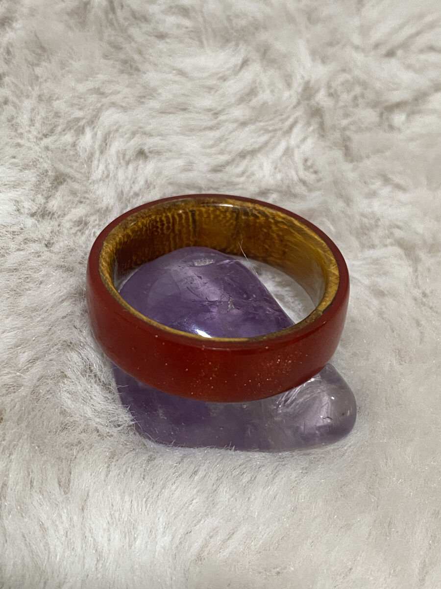 ApplePayBeautiful wood ring with red epoxy overlay. Unique, lightweight, and durable. Size 13.