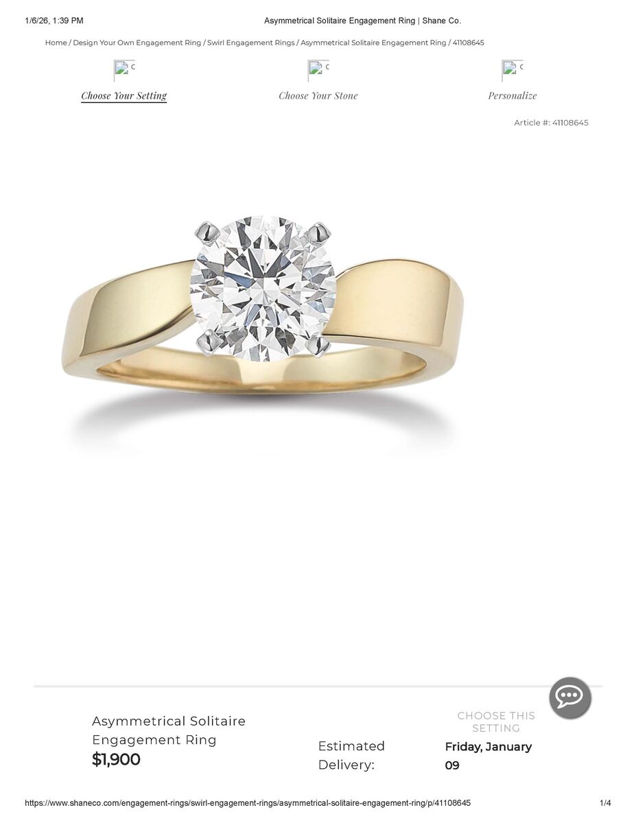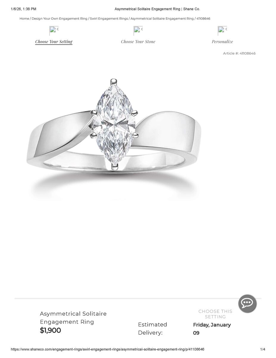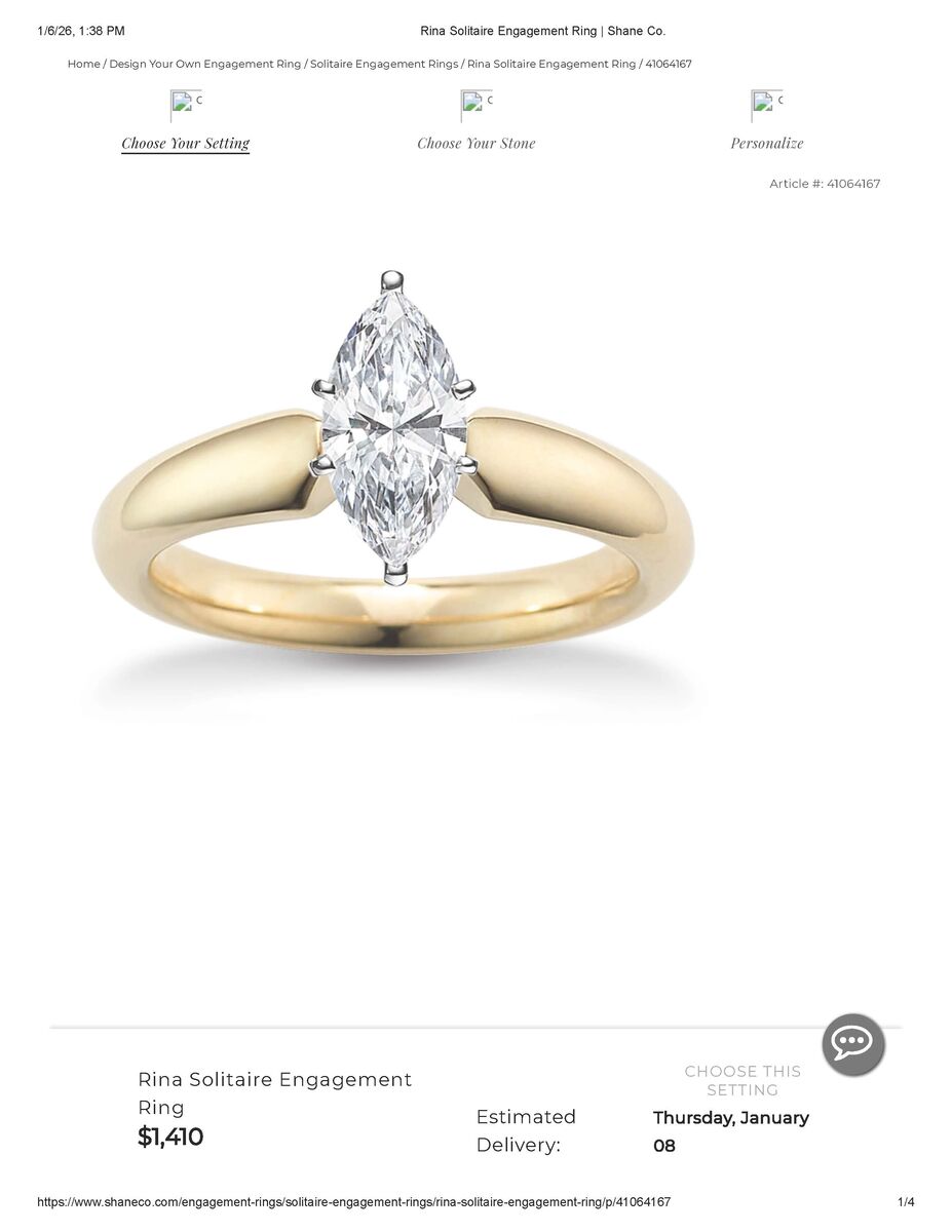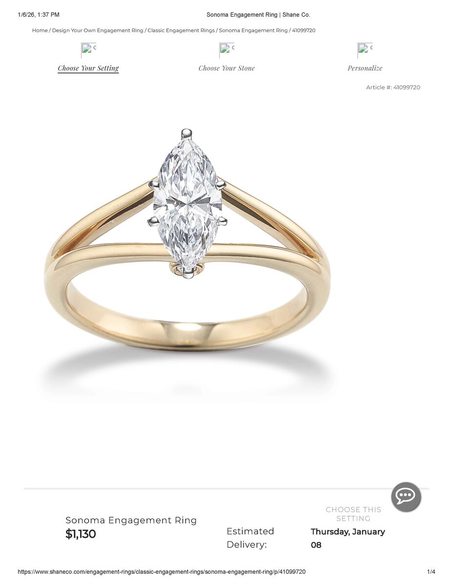 ApplePayWomen's Shane Company (paperwork included) 14k two-toned white & yellow gold and 1/4 carat marquise diamond engagement ring. Unique and beautiful curved band design. Previously loved, but rarely worn. Excellent condition. Additional photos are for comparison and show current price of similar styles & weight WITHOUT center stone.