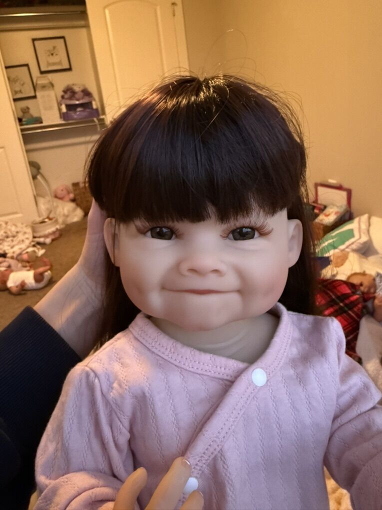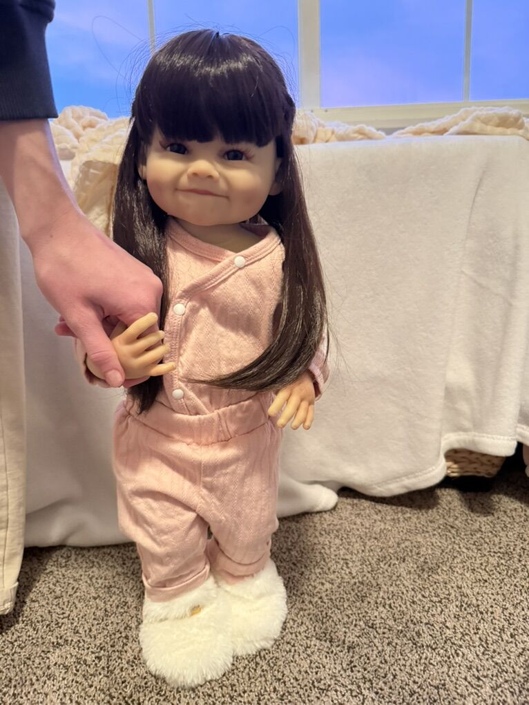ApplePayThis adorable toddler-style baby doll is made of full plastic with movable head, arms, and legs for easy posing. She features long brown hair and lifelike painting that gives her a realistic appearance.
