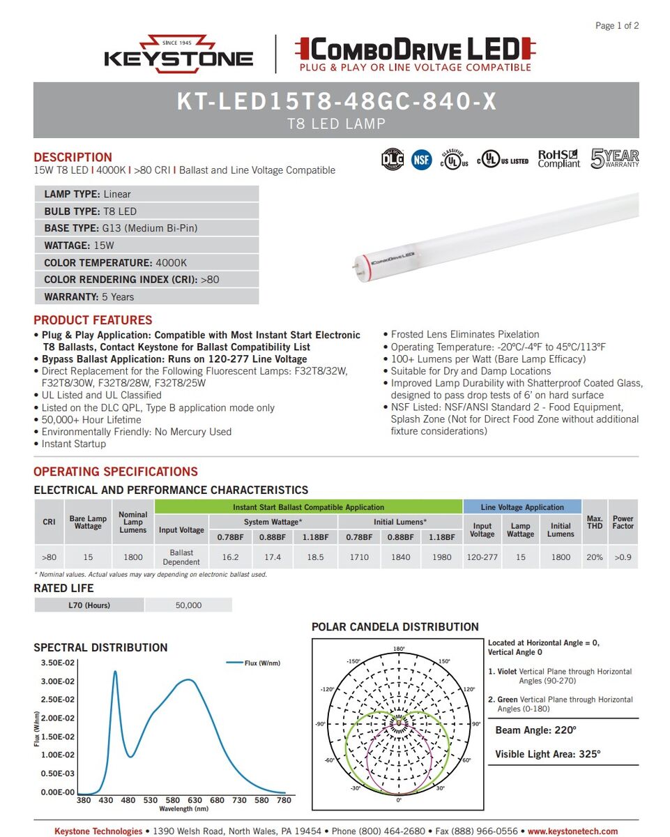 VenmoKEYSTONE 4ft LED T8 Medium Bi-Pin G13 15 W 4000K ballast compatible 25 qty NEW Retail $200+ At $50 per box it's only $2 each