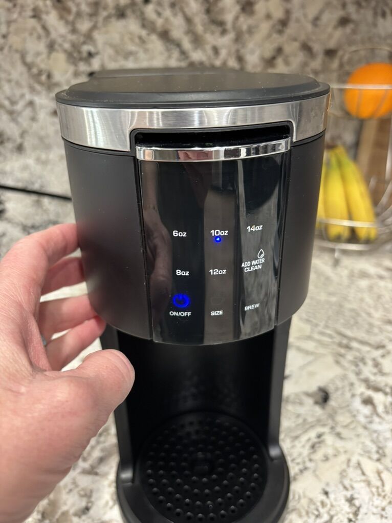 VenmoCowsar pod coffee maker 6, 8, 10, 12 and 14 oz options Instant hot chocolate, coffee, or tea Auto clean option Retails for approx $50 Great condition, very clean