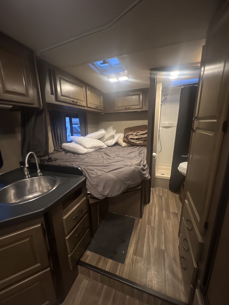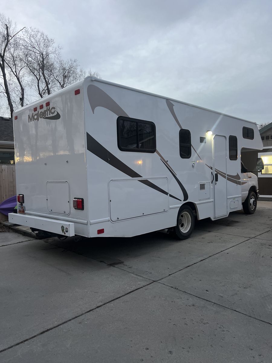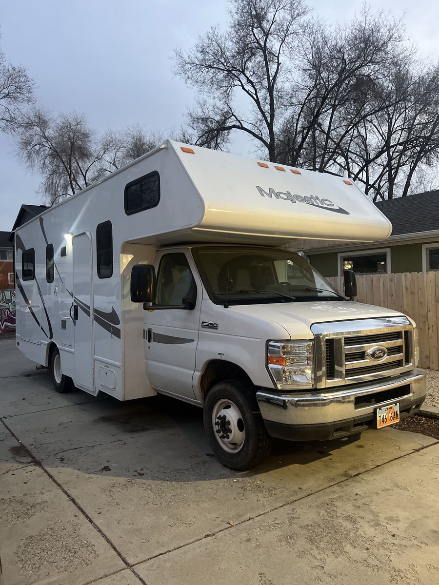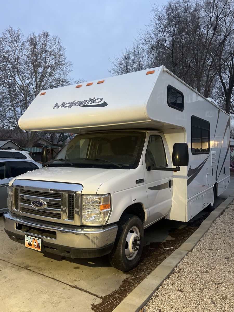 AD IS INCOMPLETE, INTERIOR PHOTOS AND FURTHER DETAILS TO BE POSTED SOON! This is a 2018 Thor Motorcoach Majestic 23A on a Ford E-350 Chassis, that comes with all accessories required for immediate use as well as additional bonus recreational accessories. I am the 2nd owner, I purchased it under warranty from Cruise America. It is an industrial grade RV that has 149,000 miles on it and has been well cared for and updated by me. I purchased this rig in 2022 to live in for a traveling job, and I no longer have use for it as I do not travel for work anymore. I am selling it as is, but I can attest that there is nothing broken or wrong with it as I am currently aware and all systems will be tested upon in-person buyer inquiries. I have regularly serviced this RV at Straightline RV Repair and have had it winterized at Camping World. I have not allowed it to be used during cold temperatures so I have winterized it and stored it to protect plumbing and other systems during the off-season. Things I have done to update it, all done by Straightline professionally, (all invoices available for proof): Brand new toilet ($400). Interior walls resealed ($380). Complete roof replacement ($8,055) instead of rubber it is now metal (better to ensure no water leaks) Exterior drainage installed with brand new moldings ($350). New vent covers installed over roof vents. New skylight installed over the shower ($95). Screen door re-done ($95). Front Exterior Caulking re-done ($190). Furnace maintenance including new circuitboard & high-limit switch installed ($425). Generator maintenance including oil change, new air filter, new spark plugs ($230). Water heater checked and tested. Specifications: 5 seatbelts. 5 accomodations for overnight guests to sleep. Length of the entire vehicle is 25ft. Width of the entire vehicle is 9ft. Height of the entire vehicle is 12ft. Engine is gasoline only, 55 gallon tank. Generator is a Cummins Onan 4000. Automatic Transmission. Fresh Water tank is 40 gallons. Gray water tank is 24 gallons. Black water tank is 24 gallons. The vehicle dry weight is approximately 13,000 pounds. I've also bought and installed a brand new battery ($500 value) for the coach portion of the RV this season that can power the coach portion for 1-2 days on a full charge. There is also available access to install a trickle solar panel if desired, I have opted not to use that but I do have the original solar panel that will be included. It has a towing system that can tow 5,000 pounds. Included with the sale: RV all-weather cover ($600 value) Toaster oven for the kitchen ($65 value) 2 sets of leveling blocks & Level ($60 value) 2 zero gravity chairs ($150 value) 1 Surge Protector ($100 value) 2 15-30 watt plug adapters 1 water tank hose 1 sewer tank hose 1 water hose pressure regulator 1 sewer hose holder 1 complete bedset for the main bed 1 complete bedset for the bed above the drivers cabin. Cutlery, cups, dishes, pots & pans, cooking utensils. Bath towels for 4 & dish cloths. A cornhole game & a football. Fire Extinguisher. Outdoor Folding table.