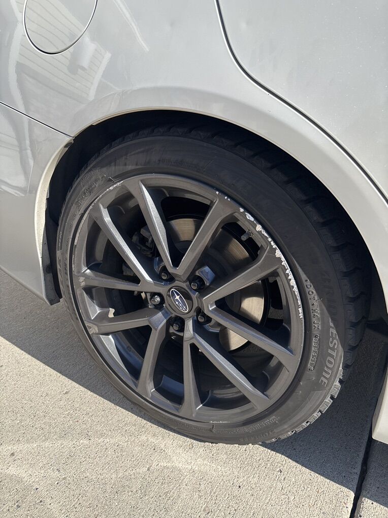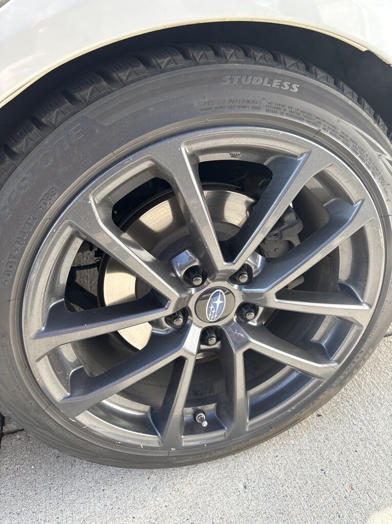 Used 245/40R18 WRX 2018 tires and rims Blizzack and OEM rims. The rims are scraped pretty good, but can be repaired. No dents or major damage.