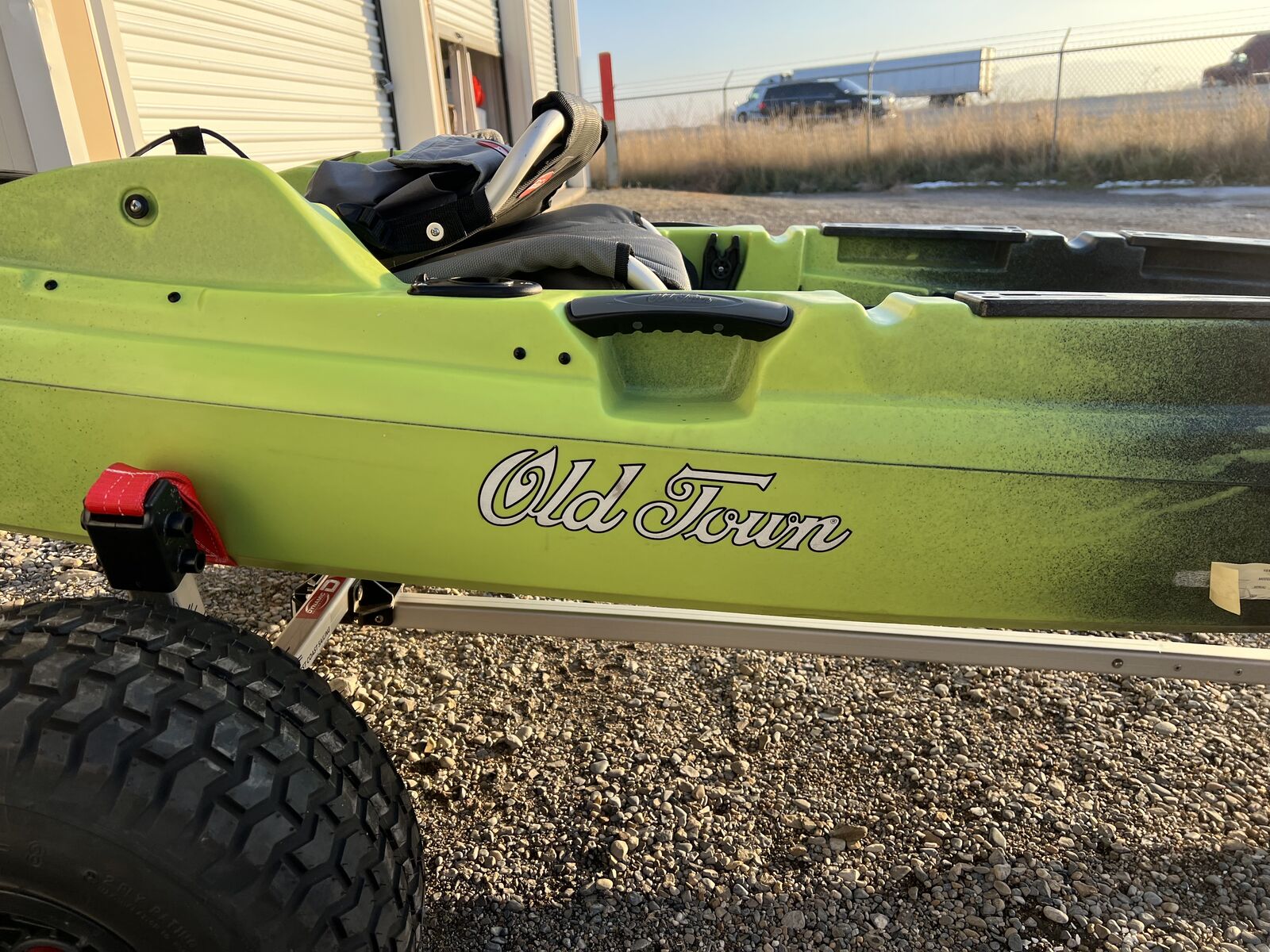 Old Town Predator 13 Kayak in, Lime Camo. This kayak was only in the water 3 times.
