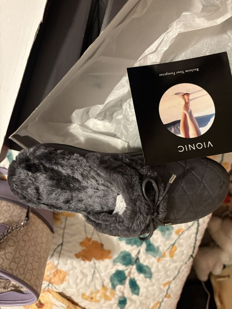 These are women’s bionic slippers. They are brand new. You can’t find them on the website anymore because I bought them four years ago, but my stuff has been in storage. I can’t wear them anymore due to the condition of my right foot. They are approximately $65-$75 slippers.  they are a size 12 women's.