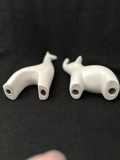 VenmoModern white ceramic giraffe and elephant figures. Giraffe 9” tall. Elephant 8” to trunk tip. Smooth clean lines. Glossy finish. Like new. No chips or cracks. Each weigh 10 ozs.
