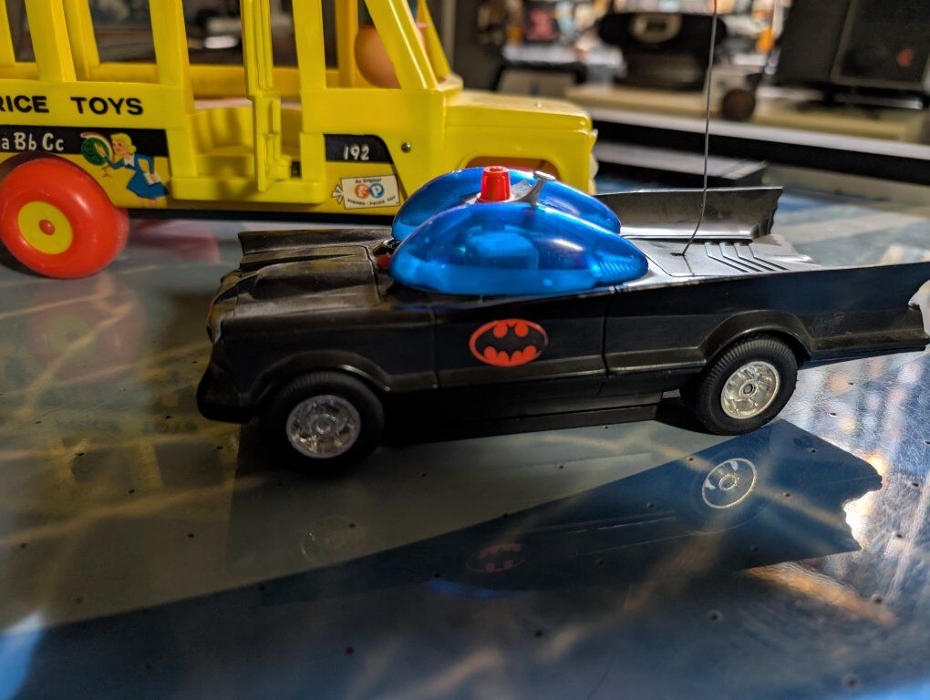 1969 Fisher Price bus .. 1977 remote control batmobile and Max Machine van $50 all 3 together