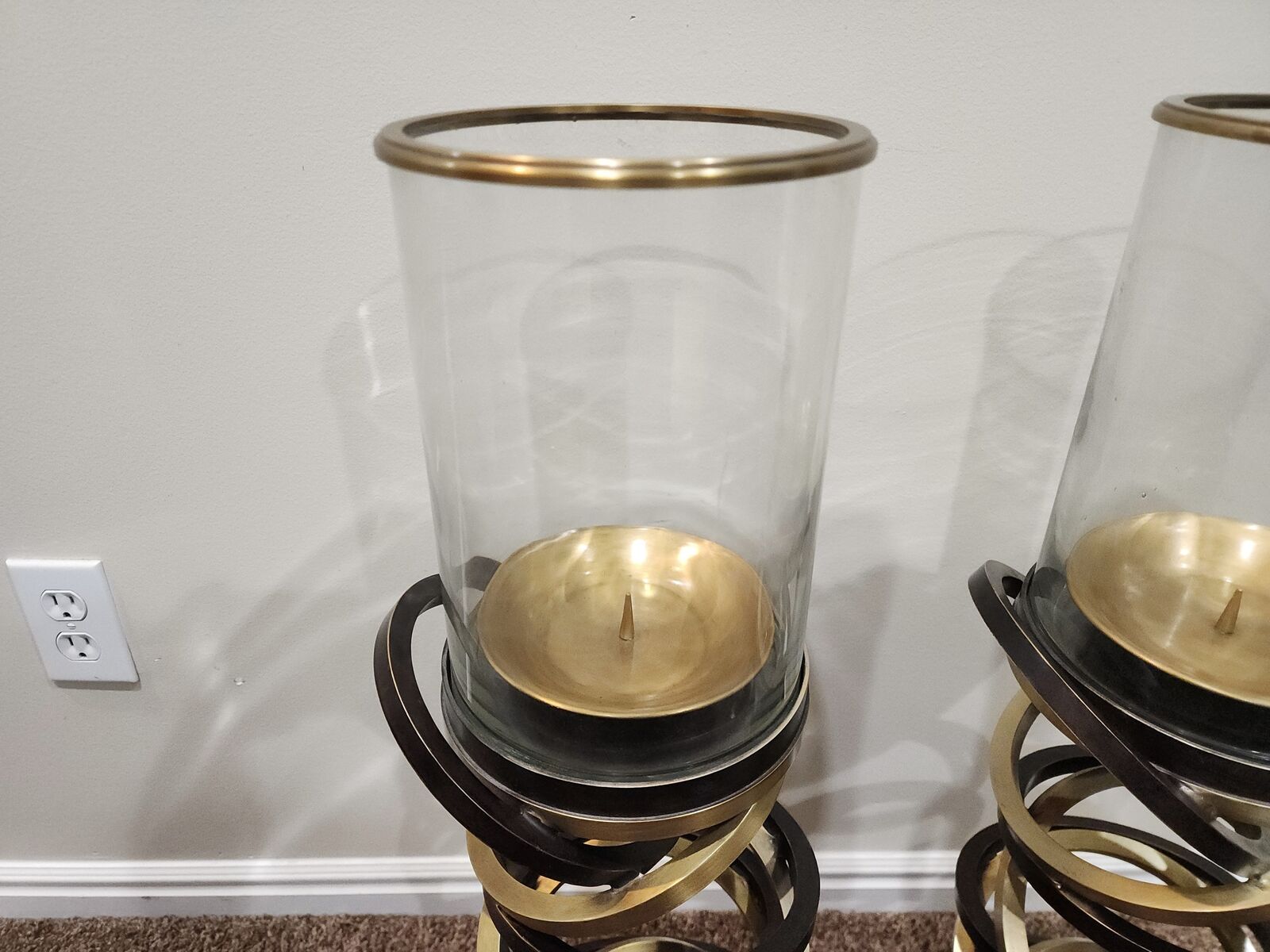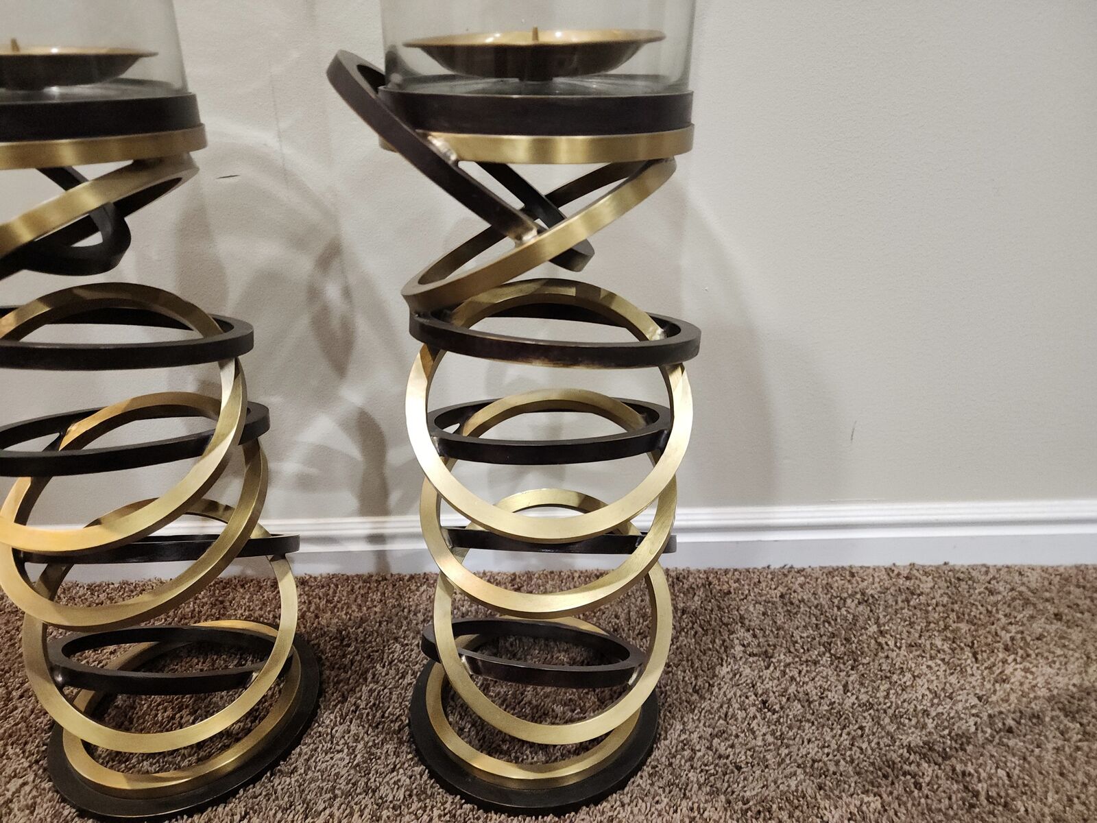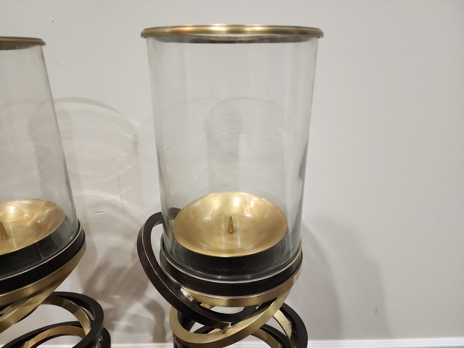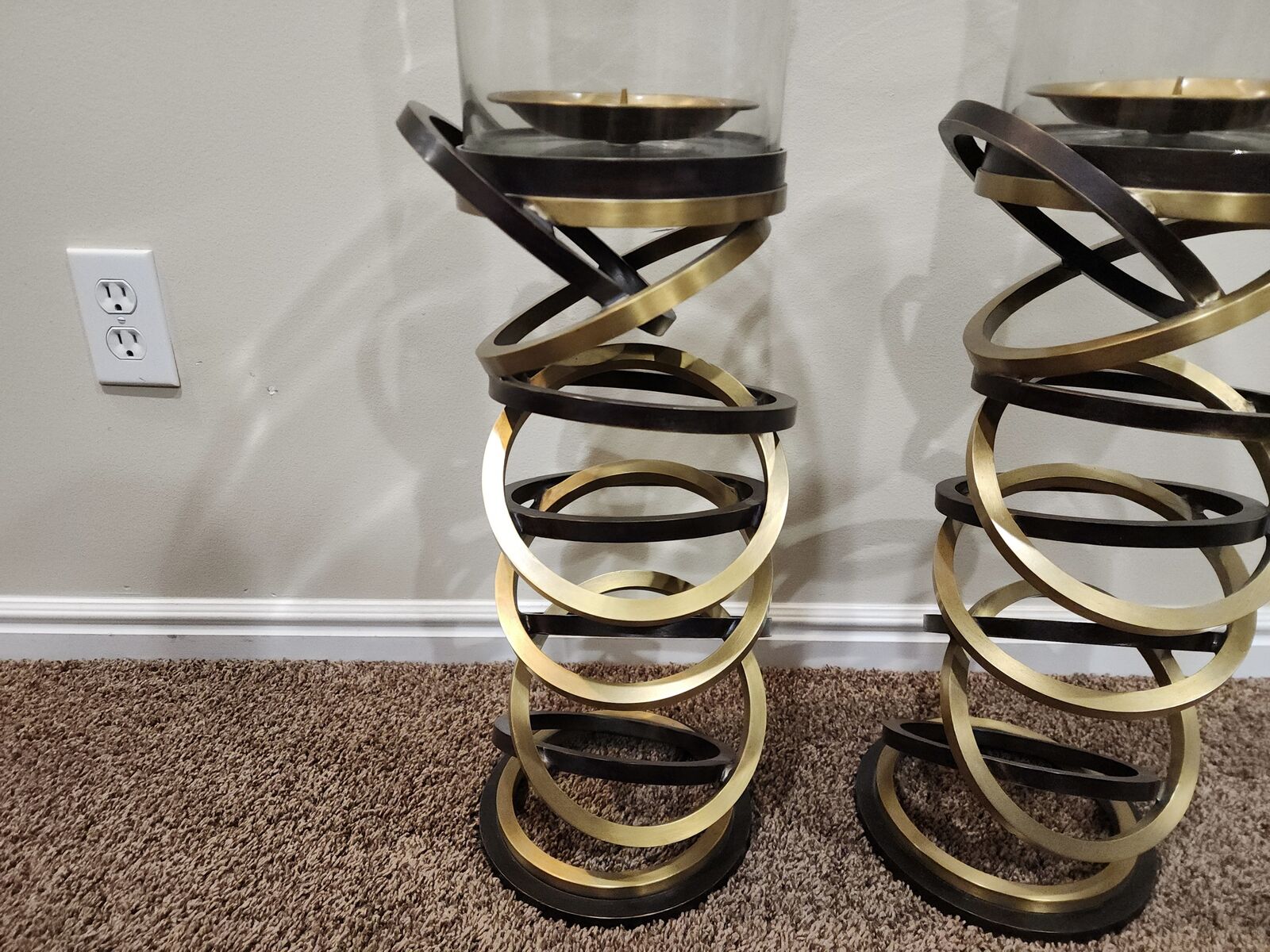 This is an excellent pair of vintage and signed Maitland Smith hurricane candle holders. They are very heavy duty, well made, the glass is thick, and is chip free/crack free. Each holder measures approximately: 39.5" tall and 8" wide. They would make accent pieces to any room, great for on top of a credenza, for your front porch, etc. The decorating with is endless! I am located in Herriman, I'm asking $225 for the pair and I accept cash/Venmo. NO HOLDS unless you are on your way, or have paid. Thanks!