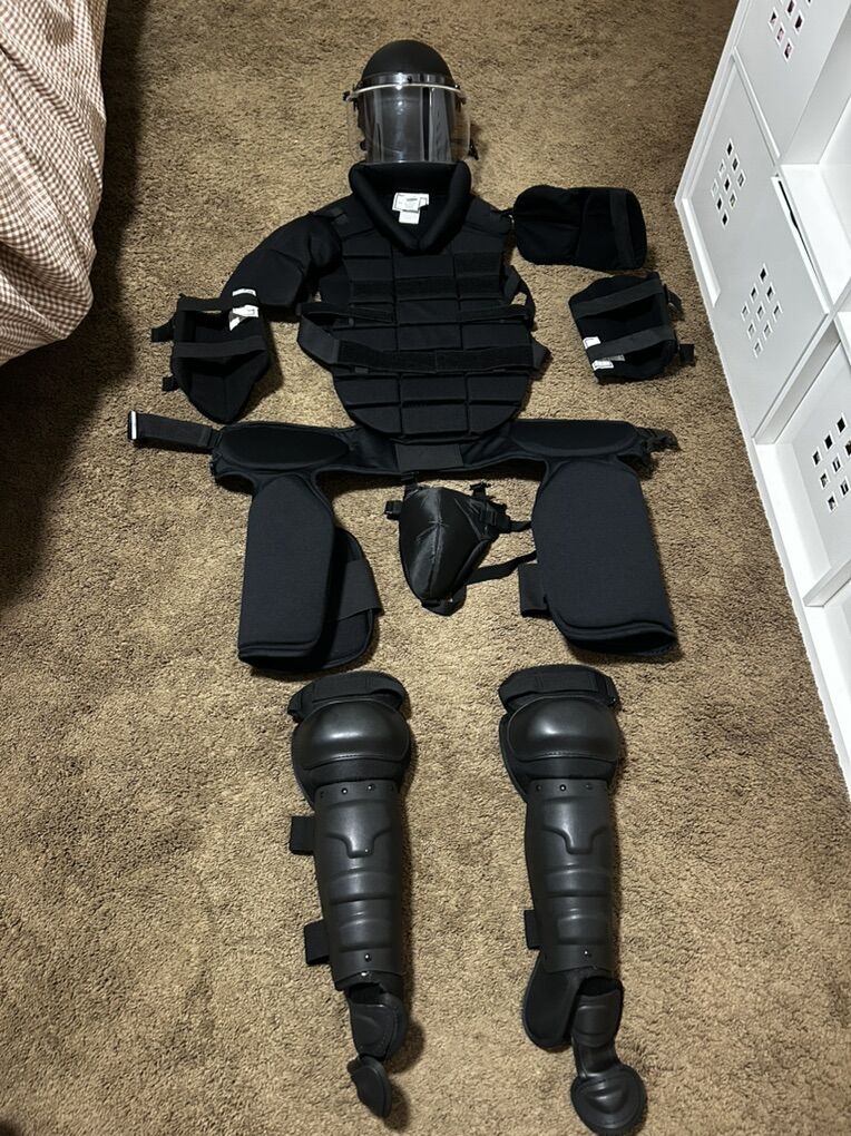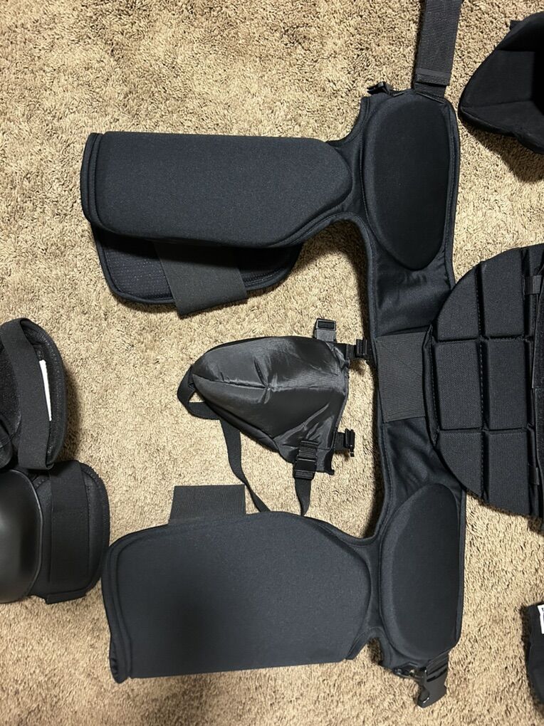 VenmoComes with a big bag , shin guards , arm pads , helmet, hip protectors, chest protector.
