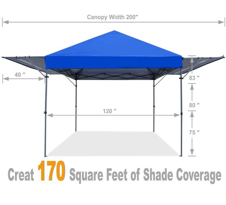 Bigger Shade: This 10x17ft dual awning canopy provides 170 square feet shade. Big enough for 10-15 people to sit under it.