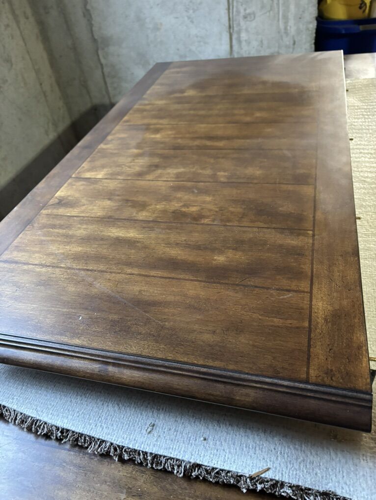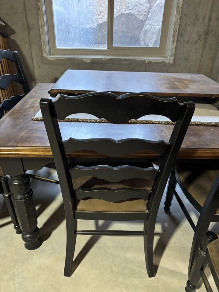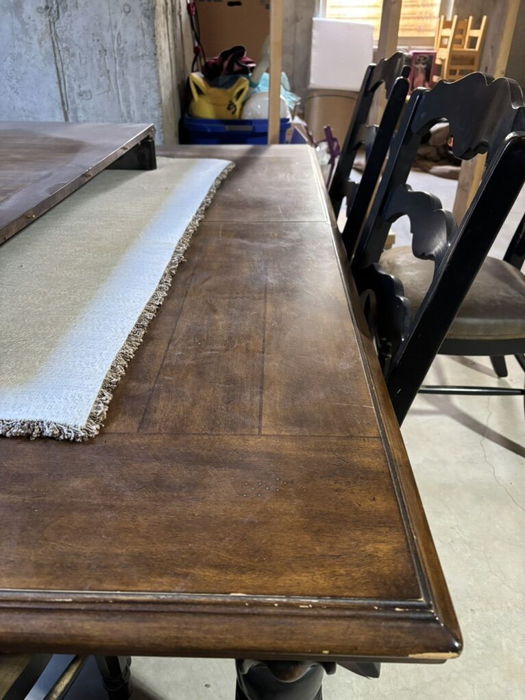 VenmoI have a 47”x72” Dinning room table with 24” leaf. Set includes 6 chairs with microfiber cushions.