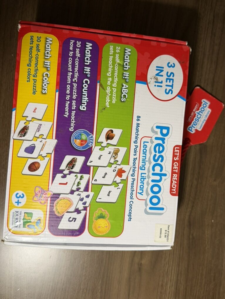 VenmoPreschool Marching Games for Numbers, Colors and Letters. There are a few missing cards but still great learning opportunities and lots of fun left in the box!
