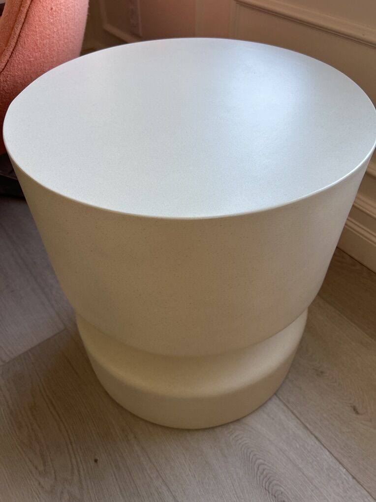 VenmoNahla Outdoor End Table $184.97 Overview Perfect for layering in as a sturdy extra surface, indoors or out. Distressing will vary slightly from piece to piece, given concrete's organic nature. Cover or store inside during inclement weather and when not in use. Details Overall Dimensions 15.75w x 15.75d x 17.75h Solid Concrete Weight 50.71 lb Volume 4.91 cu ft New in box pick up only