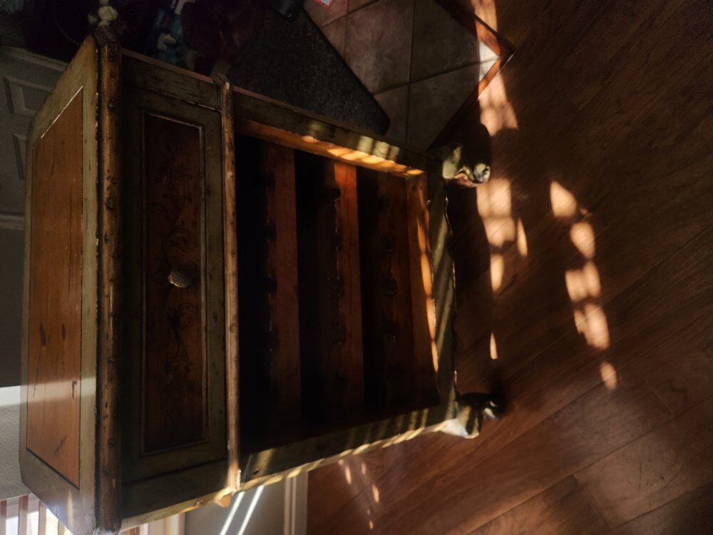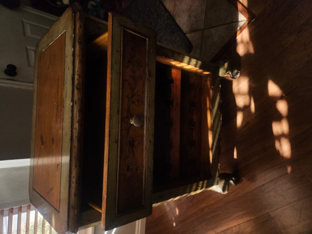 ive had this wine cabinet for a couple of years and i got a better one so im selling this one it has a little chunk of wood missing in the front left corner but not to visible. other than that it is in mint condition. it is also an antuiqe. send me an offer