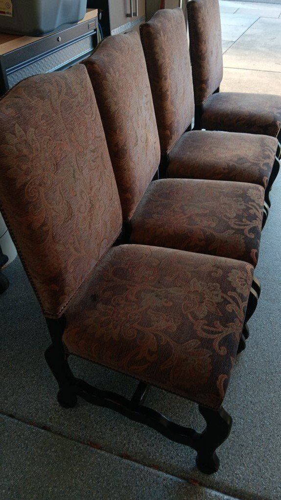4 beautiful upholstered chairs. Very good condition. Solid wood frame. Heavy upholstery. Non smoking home.